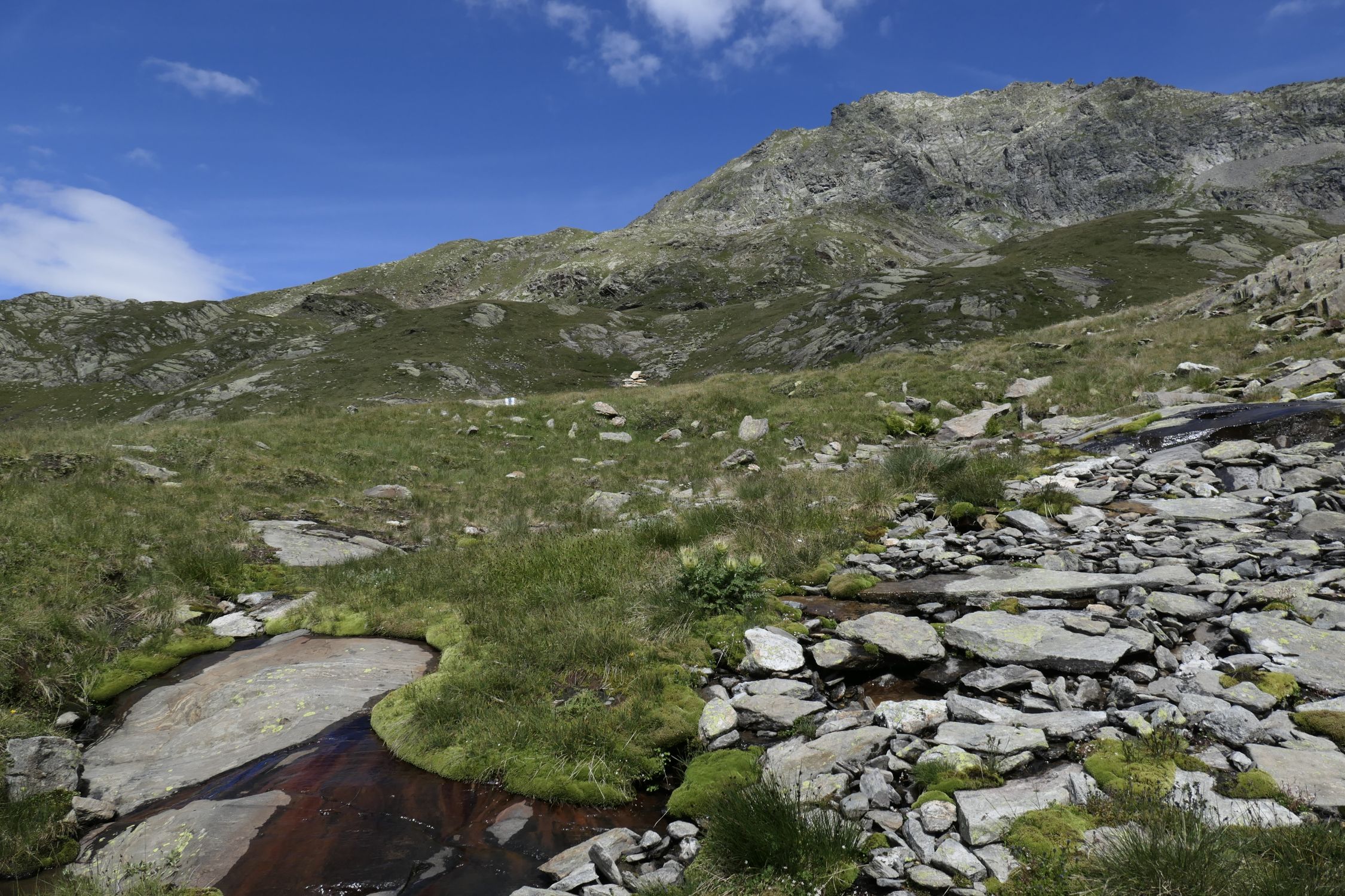 Von Hospental nimmt man zunächst den Wanderweg Richtung Gotthardpass bis zum Tunnel-Belüftungsschacht unterhalb des "Mätteli" (ca. 1700 m ü. M.). Bis Mätteli könnte man auch eines der spärlichen Postautos nehmen. Nun überschreitet man die Gotthardreuss - schmale Holzlatte vorhanden, wobei der Zugang zur Holzlatte beidseitig ziemlich mühsam ist. Auf der Gegenseite steigt der Weg im Zickzack empor, bis der Talboden des Guspis erreicht wird. Diesem entlang geht es parallel zum Guspisbach aufwärts, wobei der Weg nicht sonderlich gut ausgebaut ist. Nach zwei Steilstufen erreicht man auf gut 2300 m flacheres Gelände. In einem Bogen führt der Pfad ins "Hintere Loch", wo die offiziellen blau-weissen Markierungen beginnen (Route hier besser zu finden als zuvor). Die Markierungen leiten einem Nebenbach entlang und durch Schutthalden aufwärts via Gitziälpetli zur Lokalität "Bei den Seen" (Pt. 2624). Weiterhin in schuttigem Gelände führt die Route erstaunlich bequem zur Passhöhe.