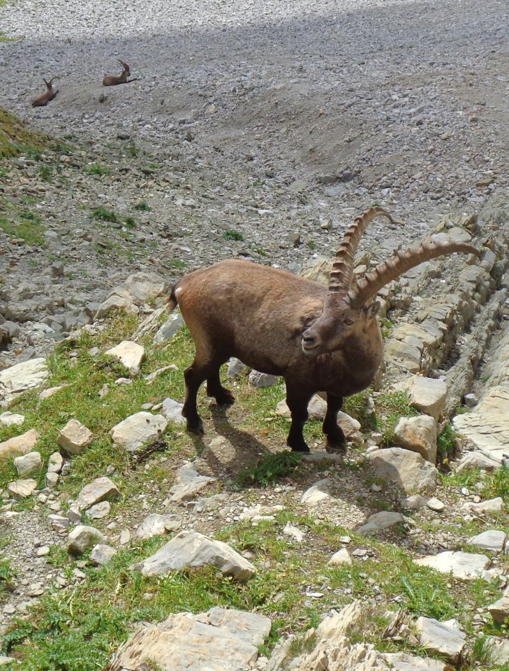SL3 (47 m, 6a+): an steilem griffigen Fels gerade, ganz leicht L haltend nach oben. Nach ca. 8 m kommt eine gebohrte Sanduhrschlinge (schlecht, in der Verschneidung, die 2m links der überm Stand liegt. man kann aber überall gut was legen. Nochmals 8-10 m hoch zu einer Platte an die rechts ein von R unten nach L oben laufendes Dächlein anschliesst. Erstaulich griffig direkt drüber, und da oben steckt dann der Nh (ca. 25 m vom Stand). Ab jetzt alles klar durch die Bh vorgezeichnet (die man vom Stand unten aus nicht sehr gut sieht). Nach dem 1. Bh kommen irre Schuppenknubbel und man klettert nach L zu Grasfleck. Dort optimaler Klemmriss (7-8 cm breit), in dem man Cam # 3 unterbringt. Dann hoch zum 2. Bh. Die Crux ist am 3. Bh vorbei (sehr gut gesichert, aber auch sehr wenige Griffe). Danach einfach 8-10 m hoch zu gutem Stand.