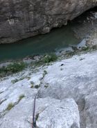 P5-6: Walking terrain. Next belay on one bolt and a nice tree