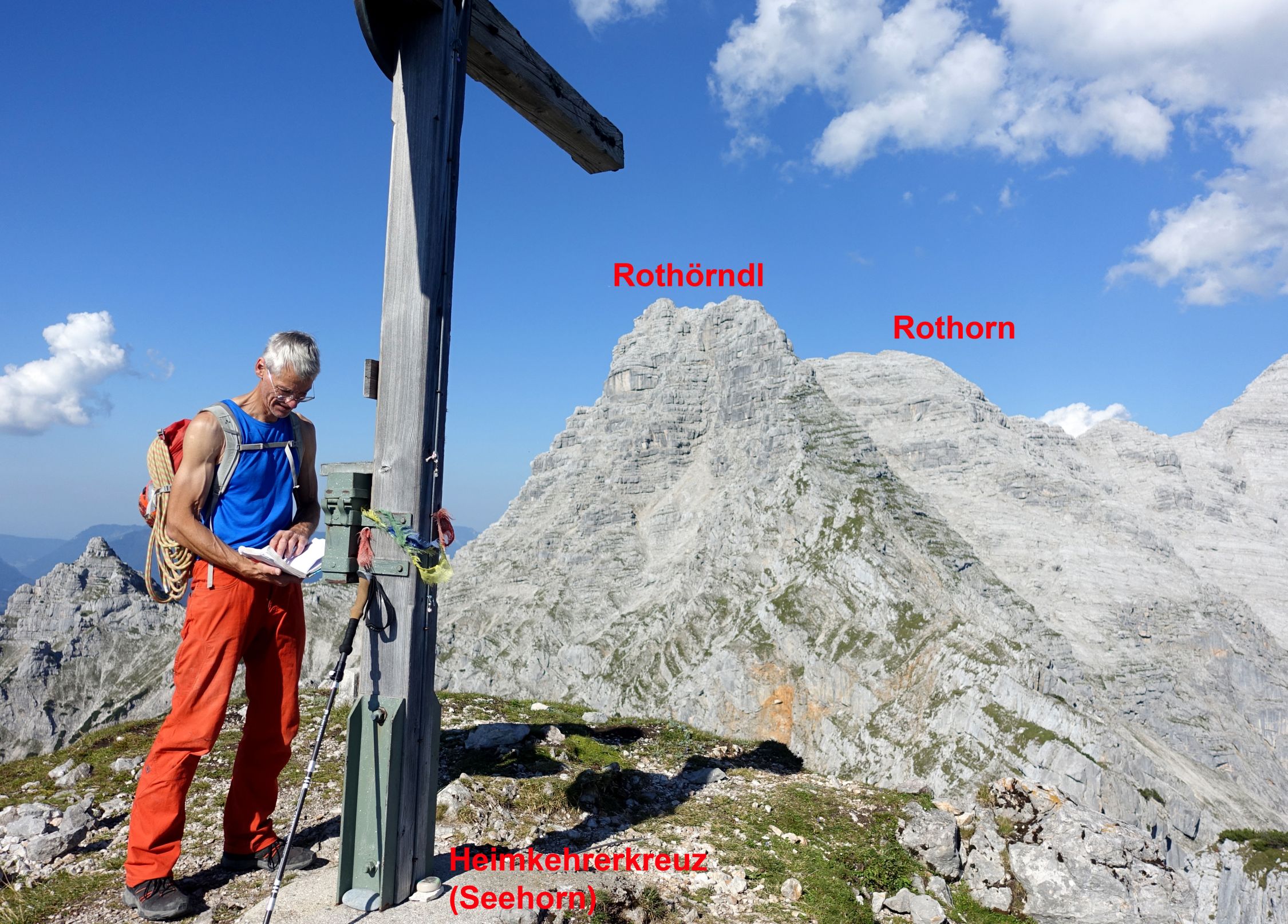 Abstieg: Über den Nuaracher Höhenweg. Vom Gipfel immer den rot-weiss-roten Markierungen durch die Karstwände folgen (schwarzer Wanderweg). Leichte Kletterei und Absturzgelände bis man ums Rothörndl rumgequert ist. Am Grat dann leichter, aber immer wieder leichte Kletterei und Drahtseile. Der echte Abstieg ist dann eher von der angenehmen Sorte. Nicht schottrig und schrofig wie bei der Ende-nie. Aber lang ist es schon (3 h, wenn man schnell ist). Und unten ist man noch nicht zurück am Auto. Das steht 12 km entfernt. Man stellt also am Besten Fahrräder am Parkplatz ab. Dann gibts noch ne nette Radlrunde (eher bergab) durch Waidring und rüber Richtung Strub.