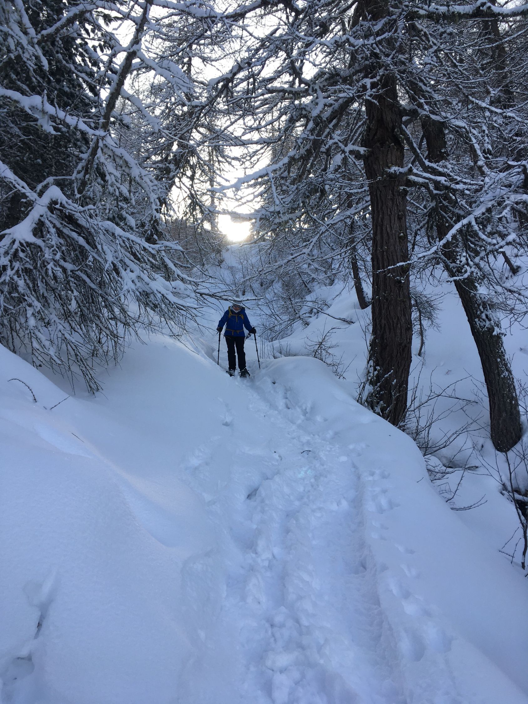 Von Maloja Creista 1802 m (kein Parkplatz) zuerst flach und später auf schmalem und ausgesetzten Wanderweg zum Plan di Cavai P. 2019 hoch. Nun Richtung Südwesten die Flanke hoch unter dem Margneta, nirgend richtig steil, bis zum Aussichtsgipfel. Abfahrt wie Aufstieg.