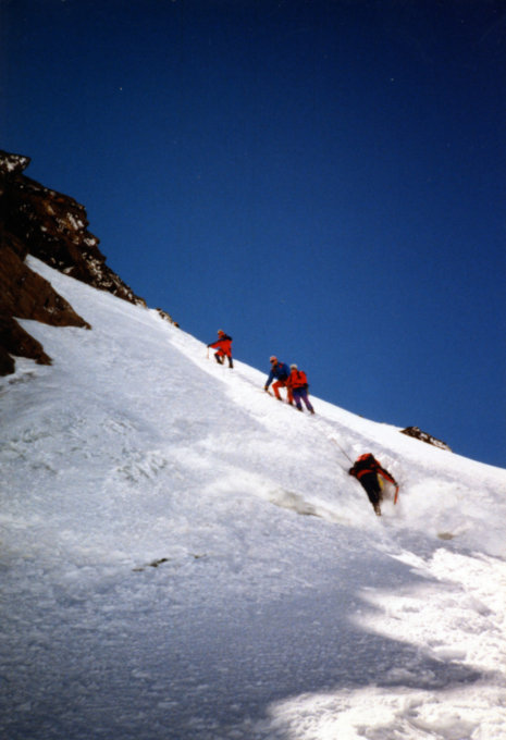 Vom Rifugio Citta di Mantova bzw. Capanna Giovanni Gnifetti über den Lisgletscher unter dem Balmenhorn durch weiter in Richtung Lisjoch, später in Richtung Zurbriggenjoch. Nun zum steilen Firnhang (kurz ca. 50 Grad) über den man einen Felsgrat erreicht der zum höchsten Punkt führt.