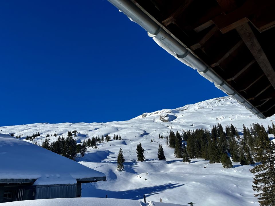 Start um 9.15 mit Skis ab Parkplatz Hirsegg. Sonnig, aber sehr kalt. Aufstieg über Schlund und Alphütten Silwänge. Auf dem Gipfel sehr windig. Abfahrt zu den Alphütten Silwänge und dort Gipfelrast nachgeholt. Die Hänge sind noch nicht vollständig zerfahren; man findet noch unverspurtes Gelände. Von oben bis unten Pulver, unten leicht schwerer. Schlusshang Stächelegg ruppig zu fahren und braucht dringend Neuschnee. Mit vorausschauender Fahrweise kann das mit wenig Schnee bedeckte Gelände umfahren werden.