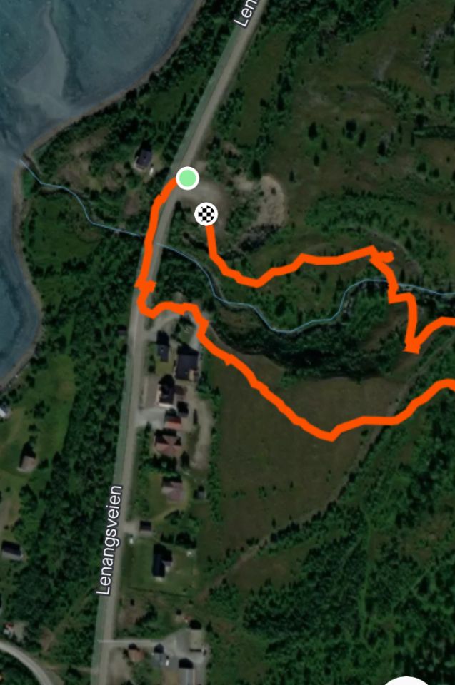 Kurz nördlich von Lenangsveien gibt es ein grossen Parkplatz. Guter Ausgangspunkt siehe Bild. Am einfachsten gleich südlich vom Bach starten. Bach Richtung Westen folgen, später bisschen N fast bis in die Lücke zwischen kleines Storgalten und das Ziel. Nachher steilt es auf und in Spitzkehren wenig W vom N Rücken bis auf den Gipfel. Abfahrt wo es am meisten Pulver hat ;-)
