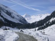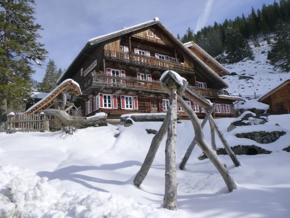 Vom Parkplatz führt unbefestigter Fahrweg weiter zu den Almen. Kurz nach dem Parkplatz versperrt ein schlüsselbetriebenes Eisentor den Fahrweg. Fußgänger und Velo-Benutzer kommen rechts daran vorbei. Nach dem Schiebetor befindet man sich im Nationalpark Hohe Tauern. Alternativ könnte man auch davor links absteigen zur Hängebrücke über den Obersulzbach (0,5 km länger, 100 Hm mehr). Auf anderer Seite führt ein Forstweg am Steinspielplatz vorbei südwärts hinauf, der dann in einen Bergweg übergeht zur Kampriesalm (1415 m). Von dort sieht man hinüber zu den Ostflanken der nördlichen Venedigergruppe. Nach der Alm muss man jedoch wieder ca. 80 Hm durch den Fichtenwald absteigen, wo man in einer Kehre auf den unbefestigten Fahrweg trifft. Auf diesem steil hinauf in 2 Kehren bis man bei der Berndlalm (1514 m) auf freies Gelände trifft. Dort gibt es einen Brunnen. Von hier erblickt man die markante Pyramide vom Hohen Geiger. Weiter auf dem Fahrweg gelangt man in südliche Richtung. Ohne viel Höhengewinn rechts an der Poschalm (Brunnen) und an der Foißenalm (1565 m) vorbei und unterhalb der Schiedhofalm an linker Seite kommt man südwärts zu einer Brücke, wo man auf rechte Bachufer-Seite wechselt. Nach nächster kleiner Brücke über den Sulzbach erreicht man die Hofrat-Keller-Hütte (1669 m), bzw. das Wildnishaus Nationalpark. Danach passiert man die Postalm (1699 m) an linker Seite. Bis dorthin ist der Fahrweg im späten Winter geräumt. Die Postalm ist bewirtschaftet (Einkehrmöglichkeit) und bis dorthin fährt ein Ruftaxi-Bus ab Hopffeldboden. Zu diesem Zeitpunkt ist dann auch die Kürsingerhütte geöffnet. Wenn das Taxi fährt, kann man alternativ auch mit einem MTB dort hinauffahren. Links an den beiden Hütten der Aschalm bei der Postalm vorbei passiert man danach die 1924 erbaute Obersulzbachhütte der Bergwacht an rechter Wegeseite. Links zwischen Felsstein und Hütte befindet sich dort ein offener Winterraum. Bei nächster Geländeschwelle erreicht man nach 4 Kehren die Talstation der Materialseilbahn zur Kürsingerhütte (1902 m). Während der Sommerweg (Bergweg Nr. 914) geradeaus hinauf verläuft in die Westflanke vom Keeslahner zum s’Klamml, folgt man leicht rechts drehend dem Bachverlauf auf dem Gletscherlehrweg Nr. 12B an einer Wassertemperatur-Meßstation vorbei über den Keesboden zur Brücke am Nordufer des Gletschersees Obersulzbachtal. Vor 300 Jahren gab es dort bereits einen See. Aufgrund der Erdabkühlung bildet sich dort im 19. Jahrhundert ein zerklüfteter Eispanzer mit Eistürmen, welche der Gegend den Namen gab: „Türkische Zeltstadt“. Gegen Ende des 20. Jhds. zerschmolz dieser Eispanzer und es entstand wieder ein See, seit 2003 nun 8 Hektar groß und wohl 40 m tief. Bei ehemaliger türkischer Zeltstadt steht ein Wegweiser. Links sieht man den Einstieg zum Klettersteig „Kürsingersteig“ (kleine Tafel am Felsfuß). Nach rechts biegt südwestwärts die Aufstiegsroute ab zur Warnsdorfer Hütte (2336 m) über das Krimmler Törl (2789 m). Entweder direkt über verschneiten See (linke Uferseite ist steinschlaggefährdet), oder rechts um diesen herum läuft man in großem Linksbogen über ehemaligen unteren Obersulzbachkees zu einer Muldenhangschwelle. Entweder durch diese rechts ausholend ostwärts hinauf, oder linker Hand abkürzend durch ein kurzes 33° steiles Couloir hinauf folgt man der Winterroute 14 zu einer kleinen Muldenebene (ca. 2500 m). Von dort führt eine Winterroute zum Gletscherabbruch des verbliebenen Obersulzbachkees. Man wendet sich jedoch weit davor nach links und steigt einen Südhang hinauf am Absatz P 2533 vorbei zum Wegweiser P 2638 (6,5 Std. ab Hopffeldboden). Dort zweigt rechts der Sommerweg ab zum Großvenediger. Halblinks läuft man nun in 10 min. hinab 2 Stangenmarkierungen folgend zur Kürsinger Hütte der ÖAV-Sektion Salzburg (2548 m). Eine erste Hütte wurde dort schon im Jahr 1841 gebaut. Die heutige, ausgebaute Hütte bietet zur Übernachtung 50 Bettenlagerplätze und im Dachgeschoss 100 Matratzenplätze.