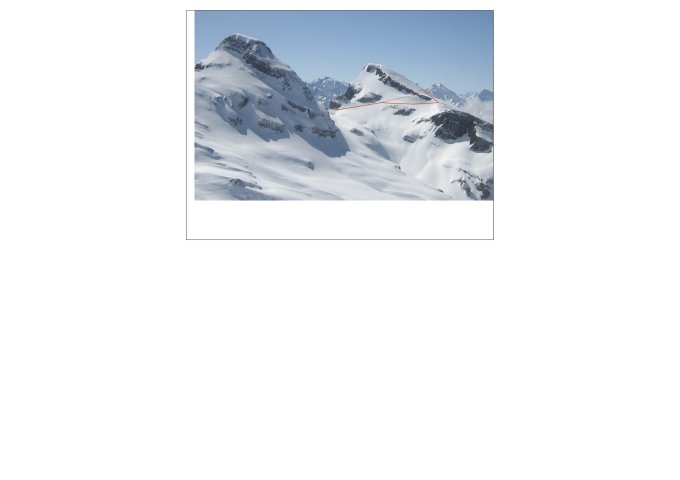 In einer heiklen Querung des Rossstock-Osthanges (37°) erreicht man die Normalroute und steigt auf dieser zum Skidepot an. Unschwierig zu Fuss auf den Gipfel.