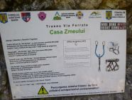 Der Klettersteig durch die südwestlich ausgerichtete Kalksteinwand wurde von der rumänischen Bergwacht Salvamont Salvaspeo Bihor mit Hilfe des Cassio Montana Bihor Clubs gebaut und am 13. Juli 2017 eröffnet. Beim kleinen weißen Schild an der Felswand beginnt das 12 mm dicke Sicherungsseil. Auf einigen Eisenbügeln überklettert man die erste Felswand stufe zur ehemaligen alten Einsiedelei in der Felswand, an der man links vorbeikommt. Deren Zustieg geschah früher von anderer Seite durch die bewaldete Schlucht. Der nächste Abschnitt führt senkrecht hinauf zu einer senkrechten Verschneidung links von einem Pfeiler. Anschließend klettert man mittels Eisenbügel eine konkave Felswand nach links drehend hinauf. Durch eine Waldschlucht weiter nach links hinauf gelangt man dann zur 25 m langen Hängebrücken mit Trittbrettern aus Holz, welche die obere Schlucht nach rechts überquert zu einem 12 m hohen Pfeilerturm. Über diesen nun direkt hinauf zum Ausstieg (45 min.).