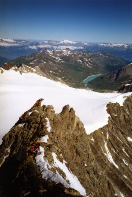Von der Moiry-Hütte über den Steig zum Glacier de Moiry, der bei ca. 3.000 m bestiegen wird. Unter dem Pigne de la Lé queren. Am Fuße des vom Pigne herunter ziehenden Süd-Westgrates entweder steil den Gletscher nach Osten hinauf zum Grat der Bouqetins oder in der Gletschermulde bleiben (flacher) und ca. auf 3.200 m zum Grat der Bouqetins queren. Nun unterhalb des Bouquetin-Grates aufsteigen bis zum Firndreieck unterhalb des Vorgipfels des Grand Cornier. Zu diesem am Besten über den Westgrat aufsteigen. Von dort an über den scharfen Grat, der meist auf der Schneide begangen wird zum Gipfel.