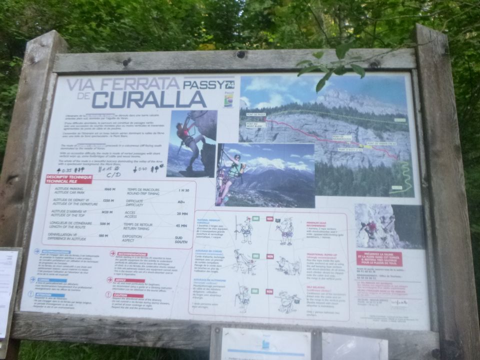 Von Norden (Genf) auf der A 40 bis vorletzte Ausfahrt vor dem Autobahn-Ende bei Passy, oder von Osten (Chamonix) auf der N 205 dorthin. Aus dem Aostatal kommt man durch 11 km langen Mont-Blanc-Tunnel nach Chamonix. In Passy (542 m) benutzt man dann nordwärts die D 43 und fährt nach Plateau d’Assy. Vor dem westlichen Ortsende biegt man links ab in den Chemin de Curalla. Nach ca. 300 m biegt links eine Schotterpiste zum nahen Parkplatz ab (1055 m). Dort steht eine Info-Tafel über den Klettersteig.