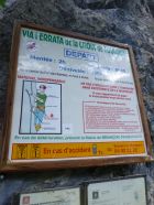 Vom Parkplatz überquert man die Rue Champ de Mars zur Boulangerie & Patisserie Oro Bianco links neben dem Spezialgeschäft für Weine und Biere. Bei der Pizzeria Mamma Mia biegt nordostwärts das schmale Teersträßchen Chemin des Sallettes ab. Auf diesem wandert man nordostwärts bergauf bis zur Linkskehre nach den letzten Häusern. Dort steht eine Infotafel über den Klettersteig. Man biegt rechts ab in einen Forstweg (Fernwanderweg GR 5C) und läuft durch eine offene Holz-Schranke noch ca. 700 m, bis nach links eine Schotterpiste abbiegt (Wegweiser: Via Ferrata). Dieser Piste folgt man ca. 400 m westwärts rechts von einem mit Autoreifen befestigten Geröllschutzwall durch ausgetrocknetes Bachbett und über einen Schotterhang bis rechts ein rot-weiß markierter Bergweg abzweigt. Man läuft in nordöstliche Richtung in einigen Kehren bergauf durch den Kiefernwald. Dabei ignoriert man dreimal Linksabzweigungen. Abschließend läuft man entlang dem Wandfuß an linker Seite am Einstieg der MSL-Route „Halyomorpha“ (7 a/b) vorbei zum Einstieg des Klettersteigs. Nach 1 Std. hat man das Ende des 12 mm dicken Stahlseils am Fuß der nach Süden ausgerichteten Kalksteinwand erreicht (ca. 1500 m).