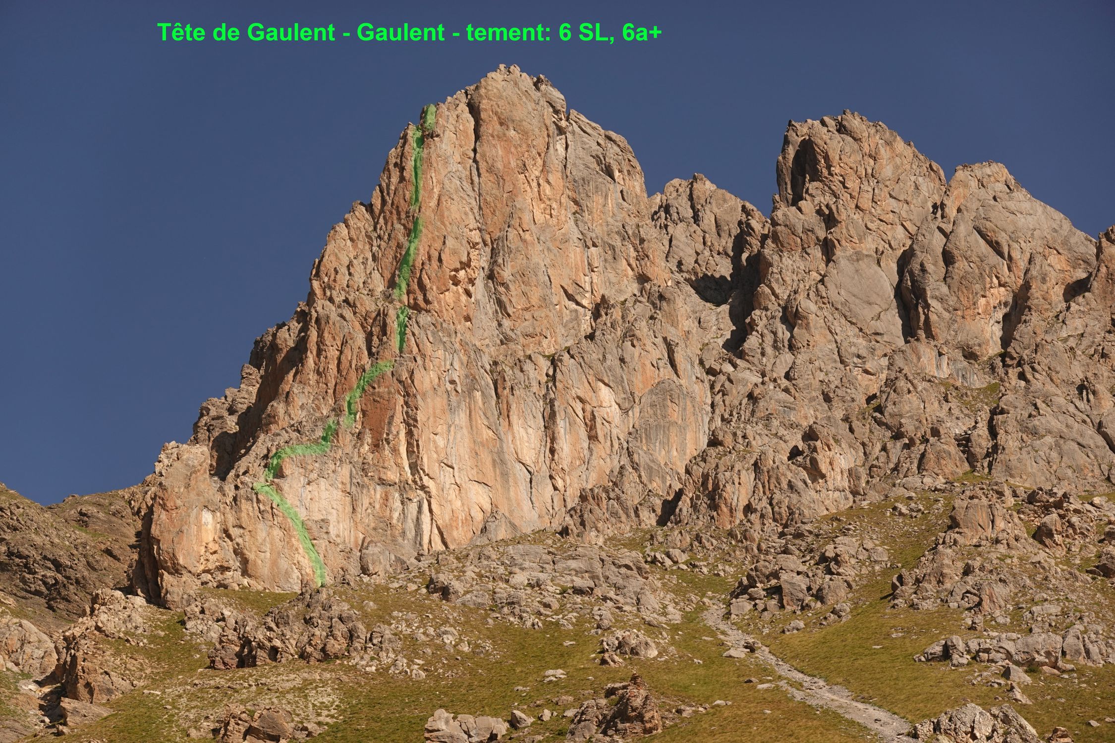 Vom Freissiniere-Tal zur Alp Tramouillon (ca. 1960 m). Guter Parkplatz in Kurve davor. Der Forstweg ist SEHR holprig. Mit ebike schöner als mit Auto. Auf schönem Weg lein Richtung Col Tramouillon (N) und irgendwann über die Wisen in dem schönen Hochtal nach W abbiegen und unter den großen hang der zur Wand hochzieht (bei Sicht alles sehr eindeutig). Zur Wand zieht ein kleiner zackiger Gips-Felsgrat hoch. Es gibt sowohl links als auch rechts davon kleine Steiglein. Etwas anstrengend, aber unproblematisch. Guter Weg-Platz am Wandfuss. Der Einstieg ist an einer klaren Rampe weit Links (noch etwas weiter links kommt eine Höhle/Gufel, z.B. für Rucksackdepot)
