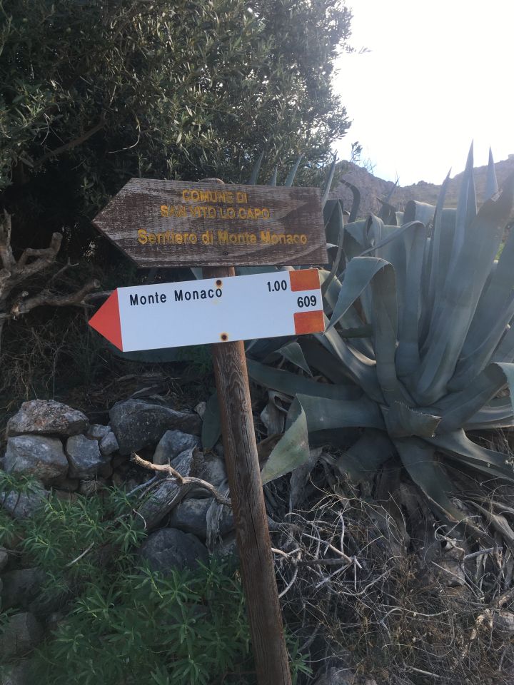 Von San Vito Lo Capo auf Hauptstrasse Richtung Campingplatz Giovanni und nach 500 m links abbiegen und alles geradeaus bis die Strasse in eine Schotterstrasse mündet, nach 300 m hier parken. Nun dem Wegweiser folgen steil hoch auf gerölligem Wanderweg bis auf den Südrücken und auf breitem Schotterweg bis zum Gipfel. Abstieg wie Aufstieg.