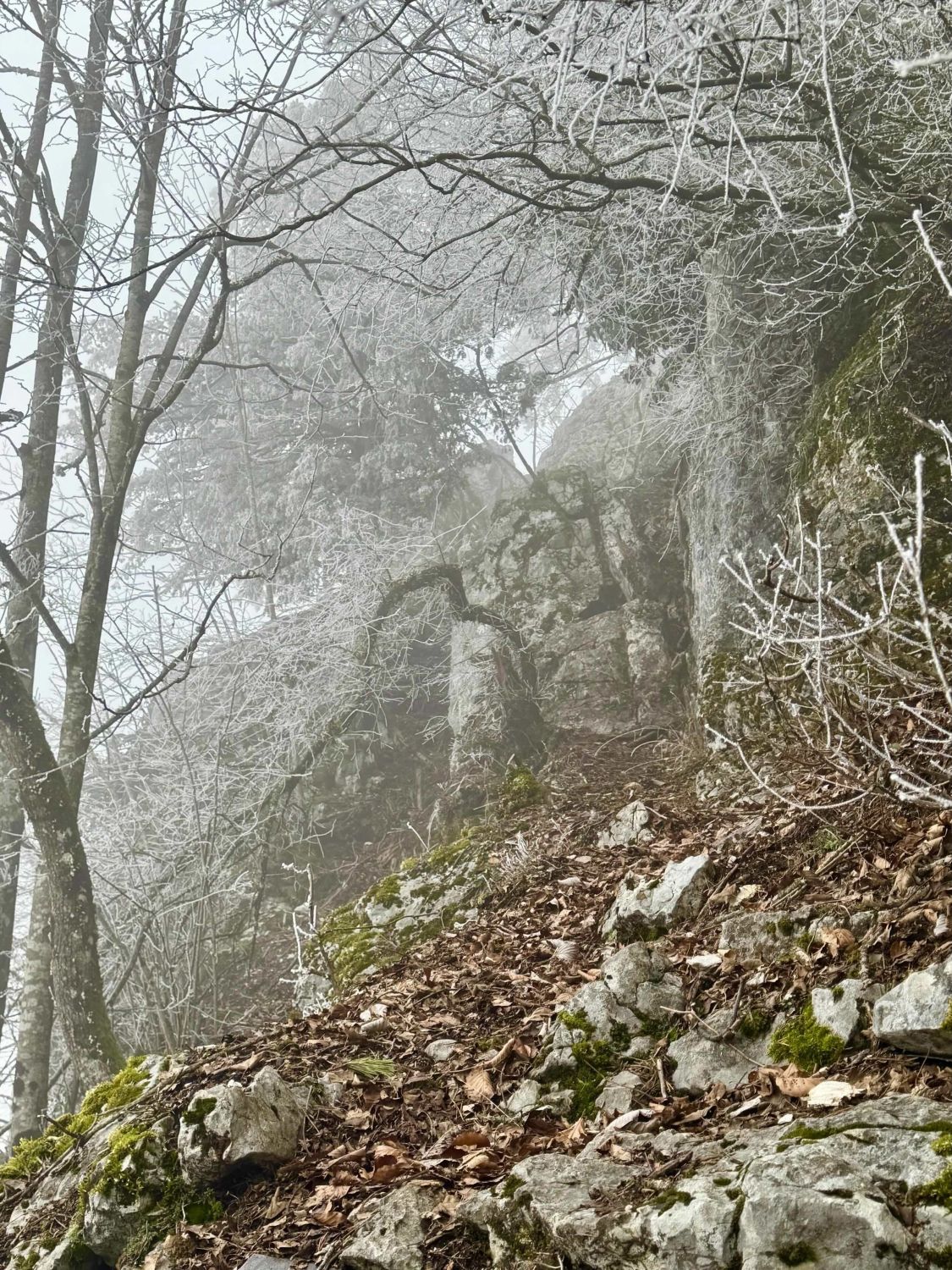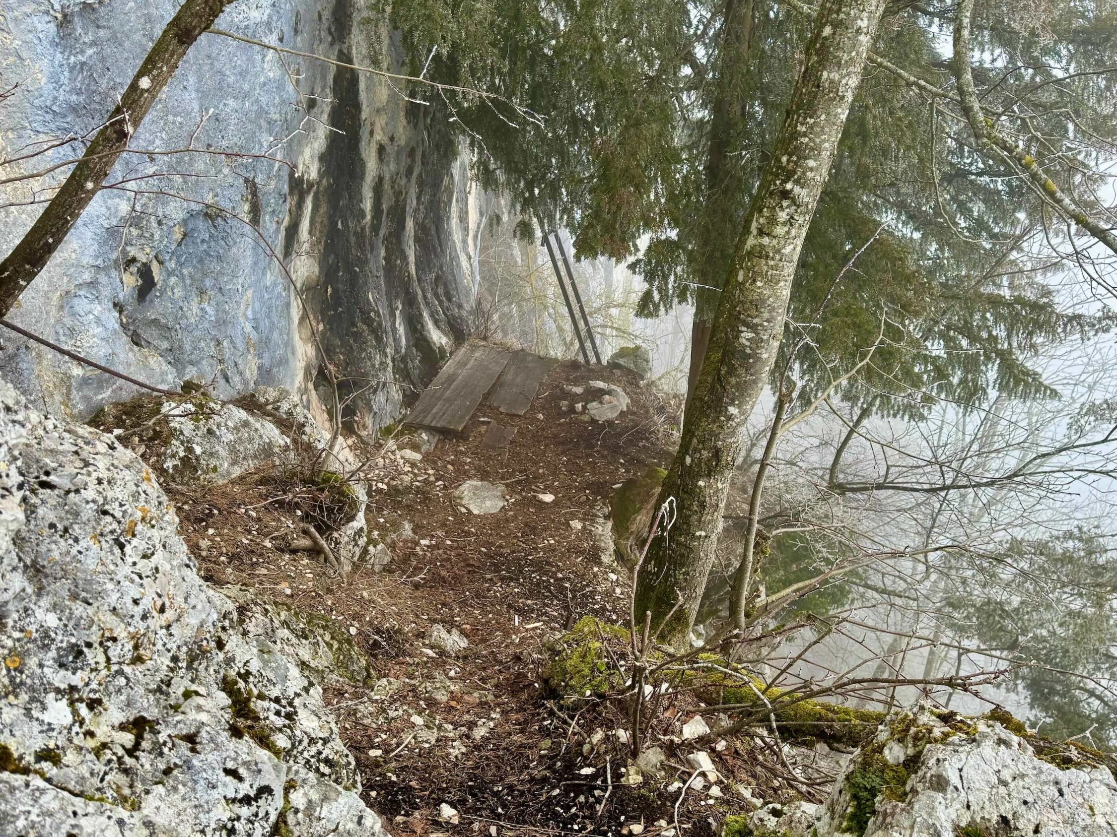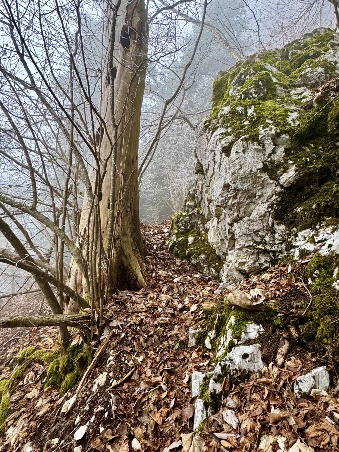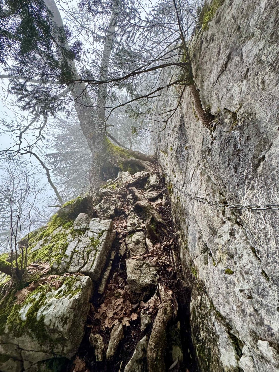 In der Spitzkehre auf Höhe 820 MüM findet sich der Einstieg zum Rundloch. Eine sehr hübsche T4 Route. Gelegentlich sind Hände und Ketten gefragt. Der Weg aufregend originell hübsch... eine Wucht für die Sinne.