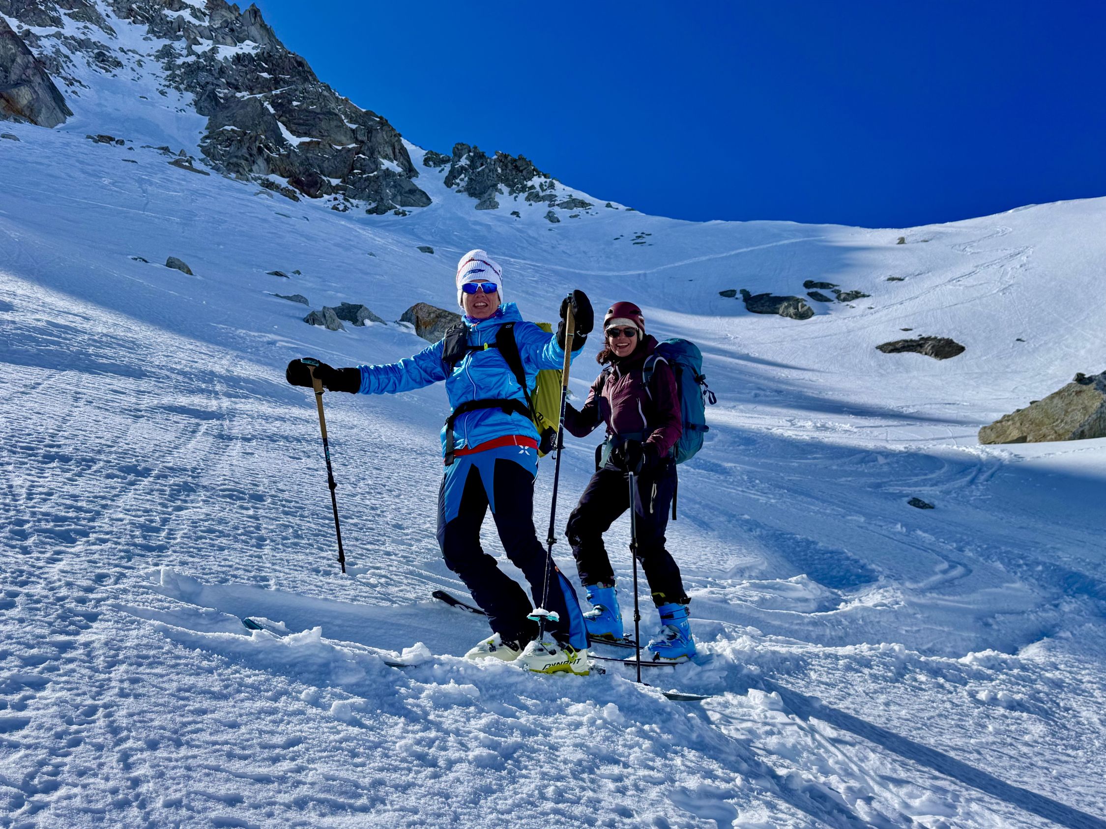 Ski, Felle, Harscheisen. Steigeisen, Pickel. Ev Seilsicherung mit 20m Seil. Der Gipfelgrat hat eine kleine eklige ausgesetzte Stelle zum Klettern.