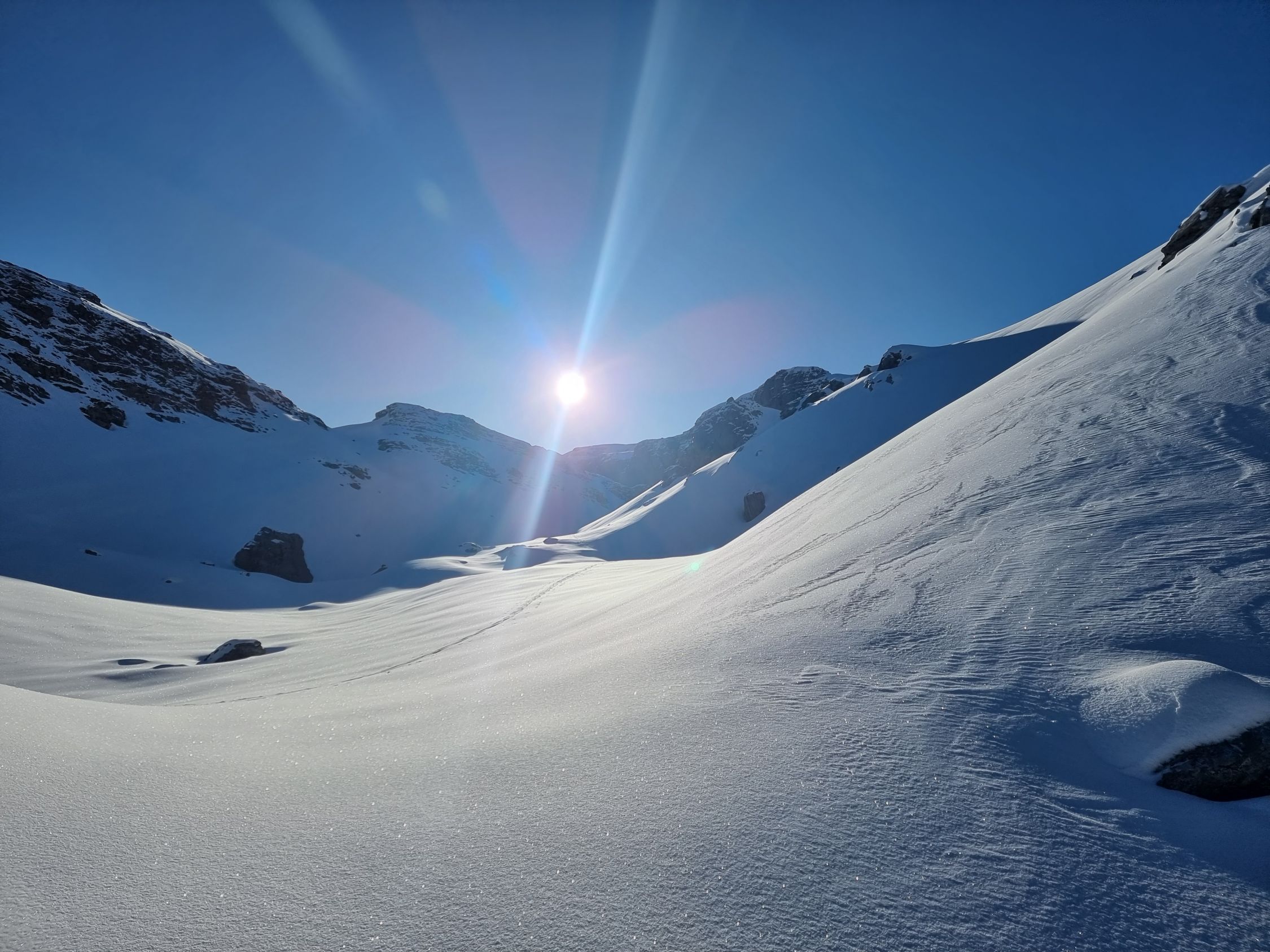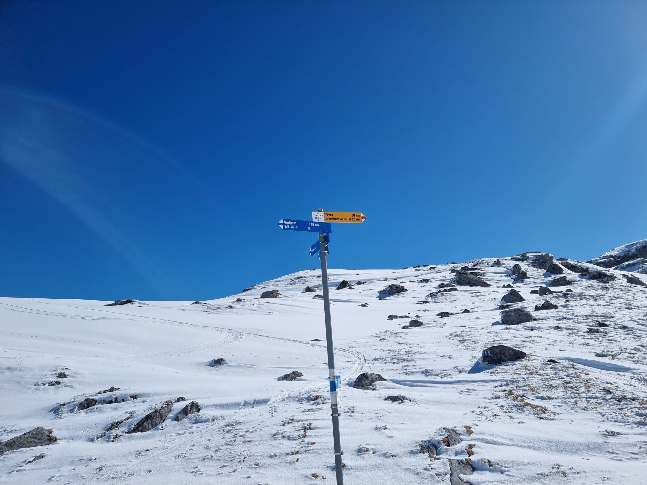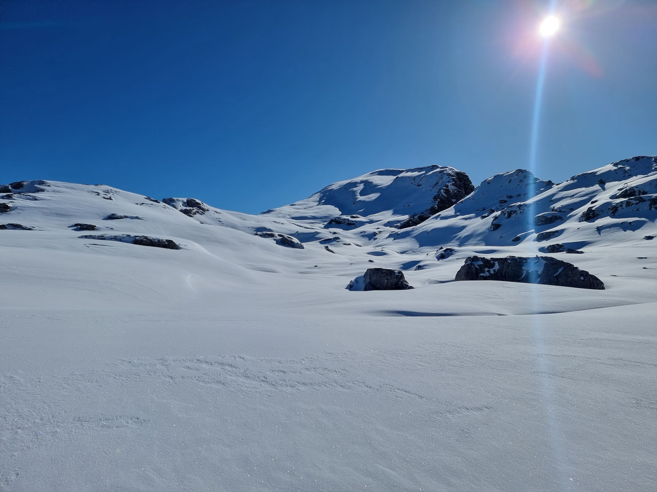Mit dem Auto bis zum Ruosalp (Unter Stafel). Nachfolgend mit den Ski's via Ober Stafel, am Chli Glatten vorbei zum Glatten. Wunderschöne Abfahrt zum Firner Loch. Wiederaufstieg zum Läckistock. Nun den gleichen Weg zurück zum Glatten und Abfahrt zur Ruosalp.