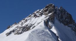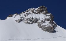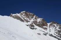 Abstieg über die Aufsteigsroute zum Louwitor oder von der Scharte (3880 m) durch ein Couloir (50°/150m) nach SW abfahren.