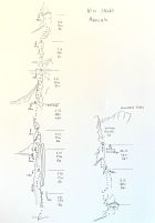 SL2: Nach L an den Pfeiler. Zwischen Bh1 und 2 recht tief queren (Bh2 kann man vorher einhängen. Danach nochmal ähnlich (tief unten rum in den großen Riss queren und im Riss ein paar m nach oben, dann deutlich leichter weiter an der Kante. (Cruxstellen sehr kleintrittig)
