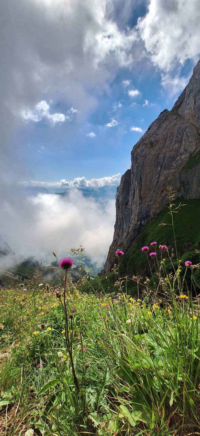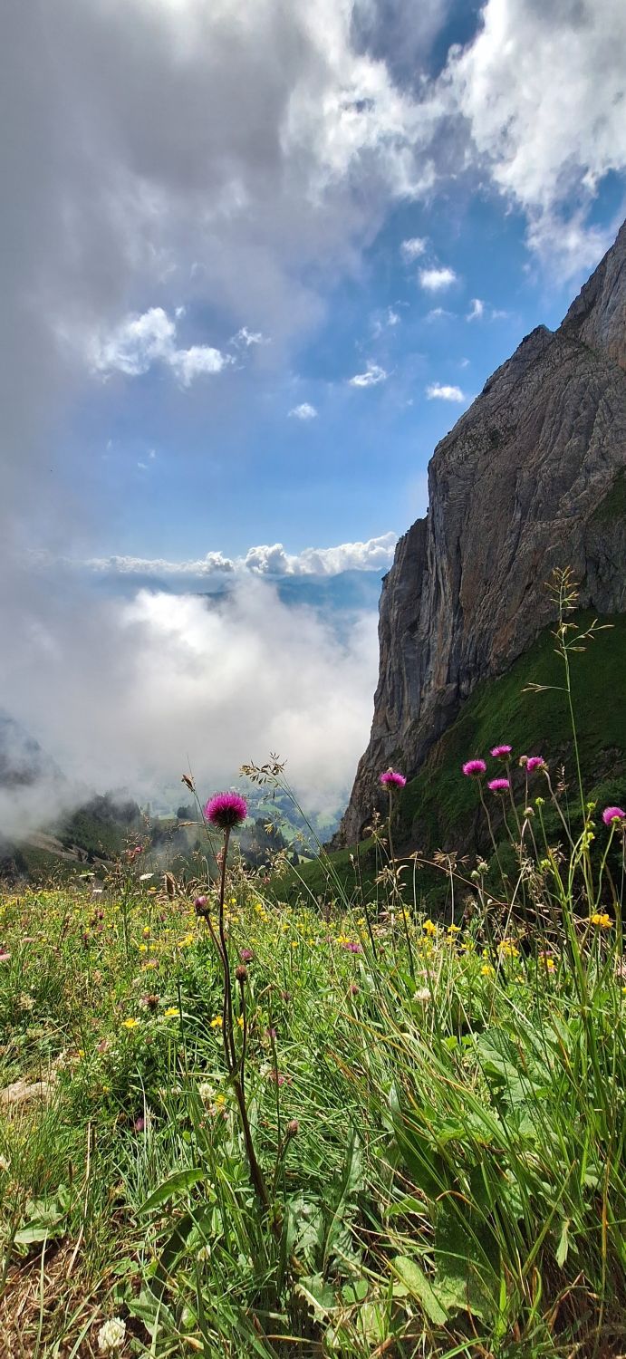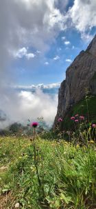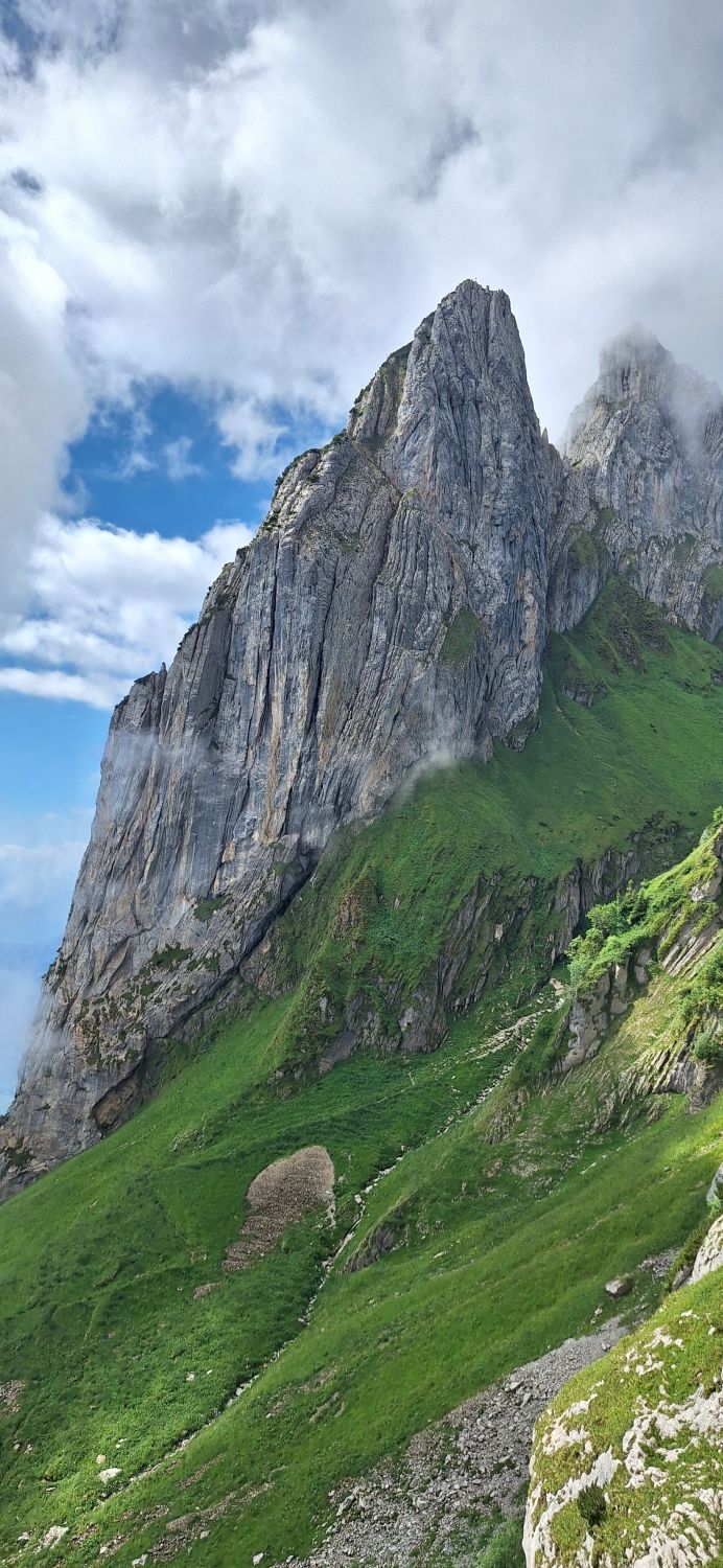 Von Widhaus Chuchitobel über die Teselalp auf den Mutschen 2122m. Weiter talwärts zur Saxerlücke und abwärts zur Bollenwees am Fählensee. Route führt uns weiter "Blau Weiss" über die Hundsteinhütte auf den Hundstein 2157m. Vor dem Gipfel steile Stellen ohne Ketten oder Seile. Besser nur bei trockenem Wetter besteigen. Abstieg über den Kamin zum Widderalsattel 1855m nur mit wenigen Kletterhilfen, und weiter auf die Megisalp 1616m. Dann geht es aufwärts zum Rottsteinpass 2120m. Von da an gäbe es zwei Varianten Richtung Wildhaus, über den Fliskopf oder Fliser Schofboden. Ich habe die 2. Variante gemacht mit einem Halt im Bergasthaus Schafboden. Dann talwärts um den Wildhauser Schafberg zurück über Camplüt nach Wildhaus Parkplatz Chuchitobel.