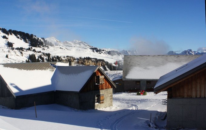 Abfahrt über Fursch und kleinen Gegenanstieg um ins Skigebiet zu gelangen. Mit dem Sessellift zurück auf den Maschgenkamm und weitere Abfahrt nach Tannenbodenalp/Flumserberg.