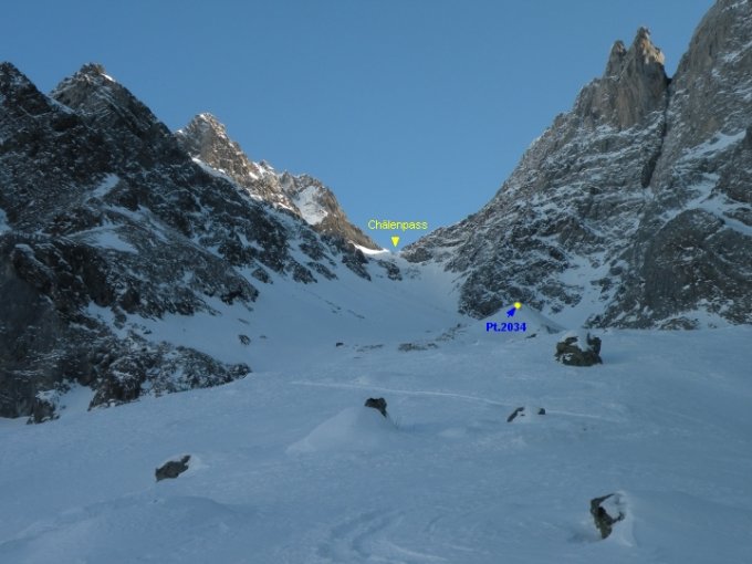 Ab Unterschächen auf der Strasse entlang im Brunnital bis ins Gebiet Rüti 1300 m und anstelle Brücke folgt man einer Waldstrasse (rechts) bis anfangs ins Gebiet Lauweli, nun am Chli Wäldli über Chärschtelen vorbei hoch zum Steinboden an der Mündung von der Ruch Chälen und von hier direkt in immer steiler werdendem Gelände Richtung Ruchchälenpass P2612 (35° auf 300 Hm im Ausstieg) erstiegen. Nun weiter auf dem Ruchenfirn in südwestlicher Richtung, südlich am Chanzeli P2825 vorbei, über eine Steilstufe (39° auf 40 Hm) weiter zum Ost-Grat und dem anschliessenden Gipfelhang zum Skidepot an den Felsen auf ca. 3040 m, nun über leichte Felsen, teilweise ziemlich ausgesetzt, im letzten Teil mit einer kleinen Kette entschärft, weiter auf dem Grat zum Gipfel.