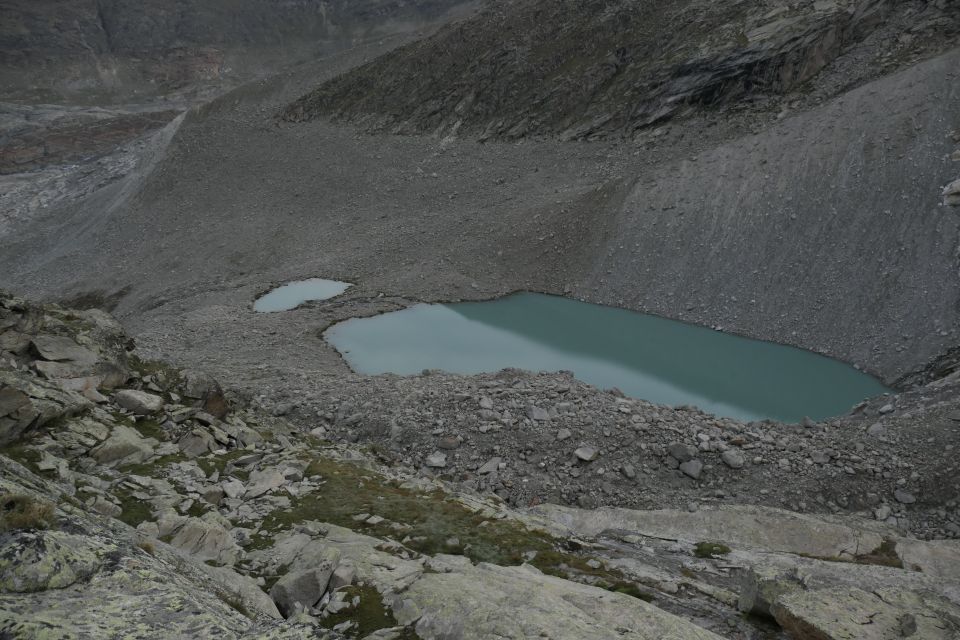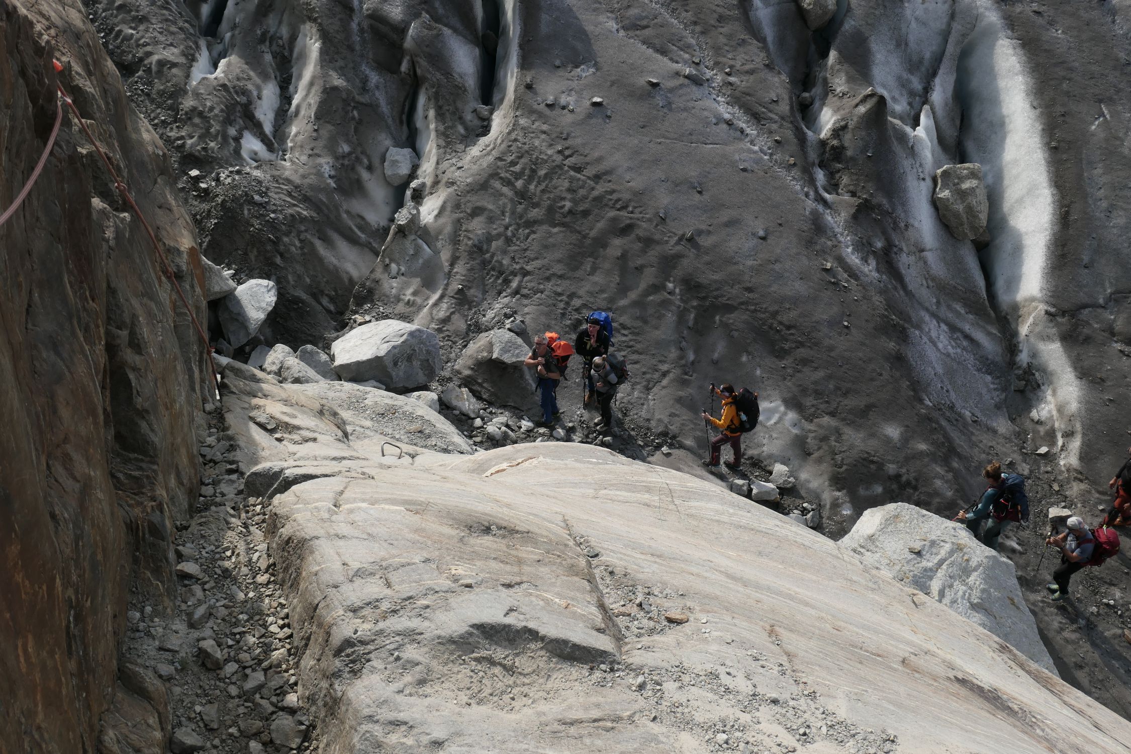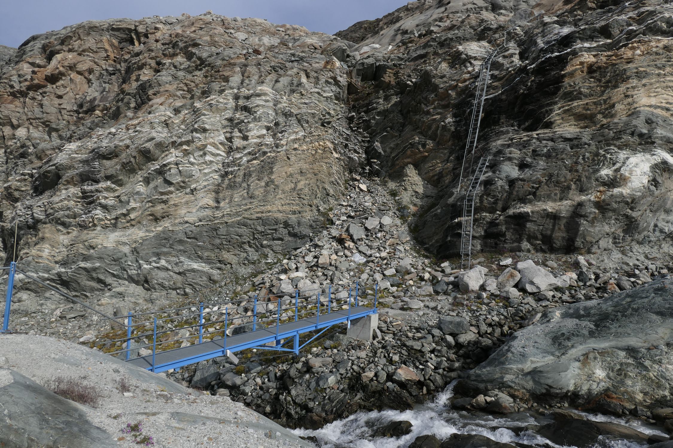 3. Der untere Weg erfordert laufend Anpassungen an den rapide zurückschmelzenden Gletscher. Die Wegbauer haben hier sehr gute Arbeit geleistet, und diese wird ihnen in den kommenden Jahren nicht ausgehen, sofern man den "alten" Weg weiterhin unterhalten möchte. Das ist zu hoffen, aber wie lange Aufwand und Ertrag in einem noch tragbaren Verhältnis bleiben, sei dahingestellt.
