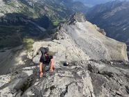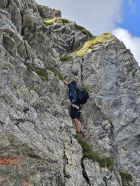 Der Grat ist durchwegs ausgesetzt mit zwei kurzen kletterstellen im UIAA 2/3 es sind Zwei Bohrhacken vorhanden.