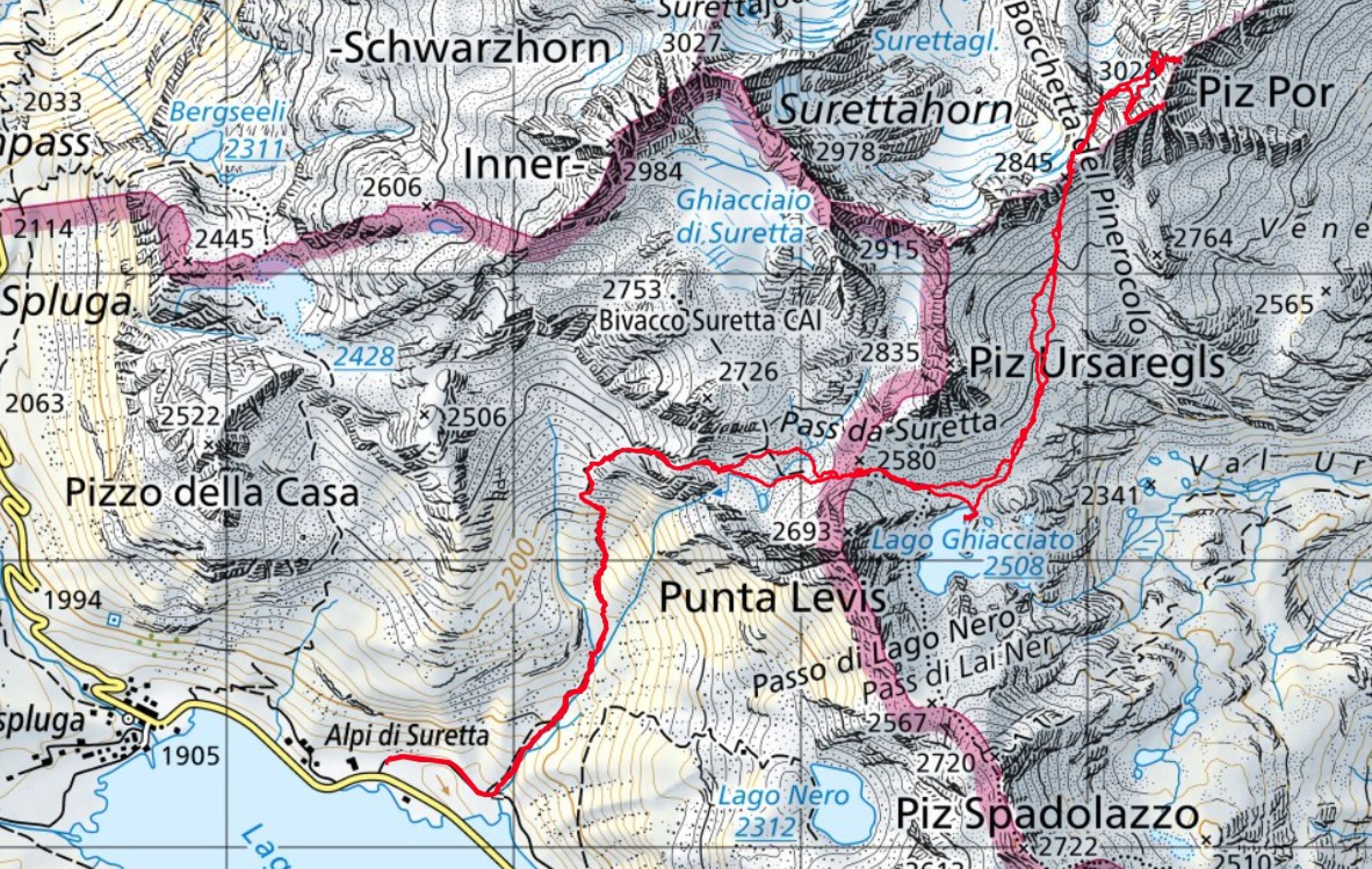 Pass da Suretta 2580 m - Boccetta del Pinerocolo 2845 m