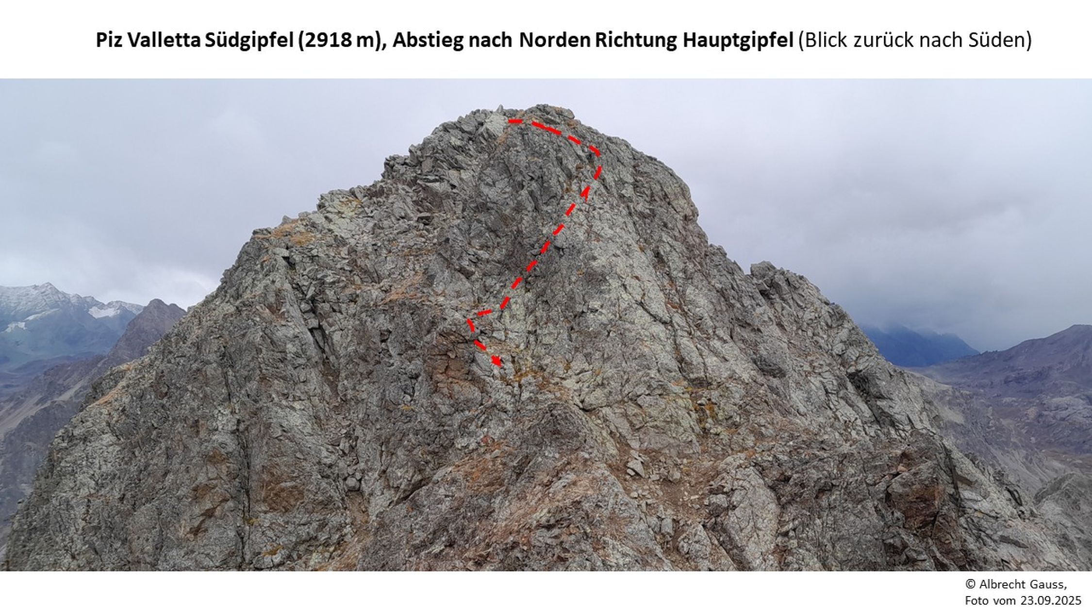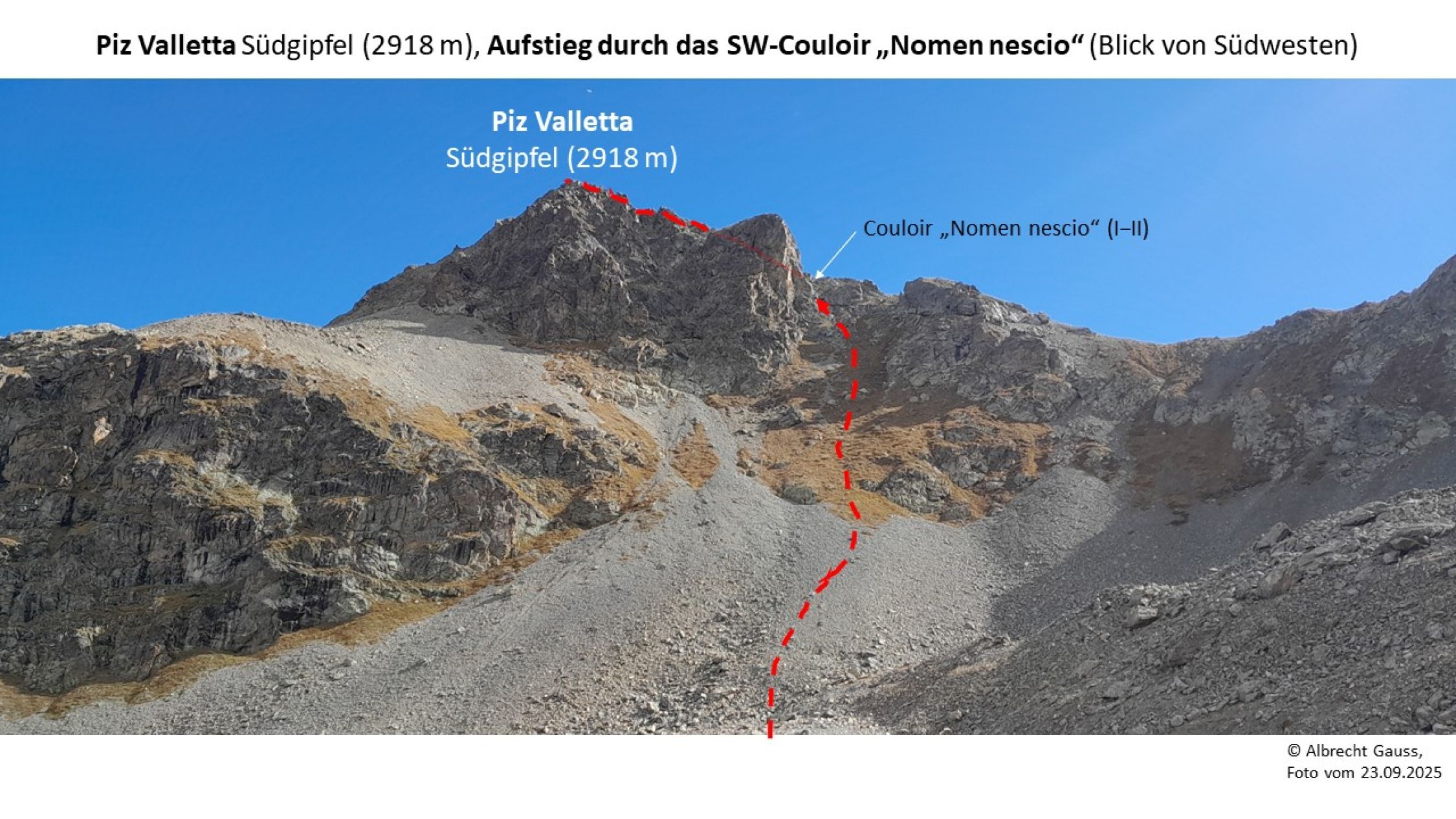 Von La Veduta über das SW-Couloir („Nomen nescio“) zum S-Gipfel mit anschließender Gratüberschreitung zum N-Gipfel, Abstieg über NW-Grat ins Valletta dal Güglia und zur Alp Güglia23.09.2025