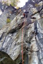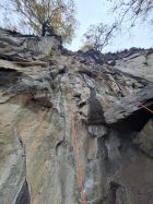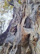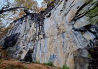 Sportklettergebiet in wunderschönem Kastanienwald. Vor manchen Sektoren (z.B. Streaked Wall) sehr schöne ebene Bereiche. Viele sehr harte Routen (7c aufwärts) an kleinen, oft leicht abfallenden Leisten (wenig hinterschnittene Strukturen). Für Sofmover (so bis 6b/c) gibt’s genug für einen Tag, und nicht nur Schrott und Efeu, sondern richtig schöne Linien. Die Wand ist nahtlos in eine Bergflanke eingebettet (kein echter „Gipfel“). Daher fliesst das Wasser eben den Hang runter über die Wand, auch gern mal wenn es nicht regnet (einfach wenn es an den Vortagen feucht war). Daher sind viele leichtere Routen nach Regenperioden sandig (die Erde, die einfach immer wieder von oben nachkommt). In der Regel ist das besonders dort so, wo die Wand schwarz ist (Wasserstreifen). In den harten Routen ist die Wand oft ganz hell. Es ist dann trocken, oft sogar wenn es regnet. Die leichteren Routen an der Chablis Wall und R davon kann man nach Nässeperioden total vergessen. Dafür gibt es an der Streaked Wall einen Bereich, wo man schöne 6b-Routen auch bei Regen im Trockenen klettern kann (komplett, einschließlich Ausstieg und Sicherungsplatz.