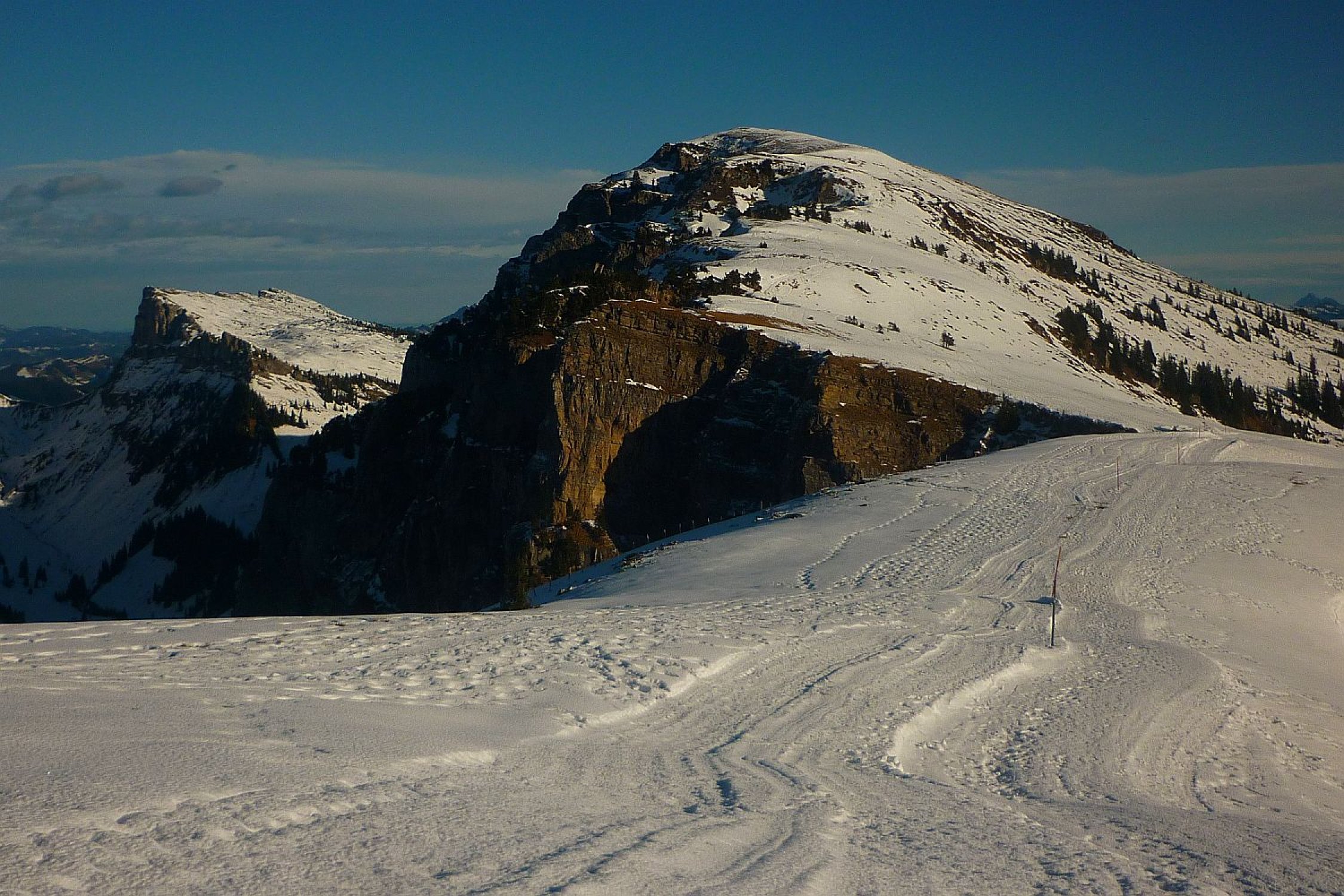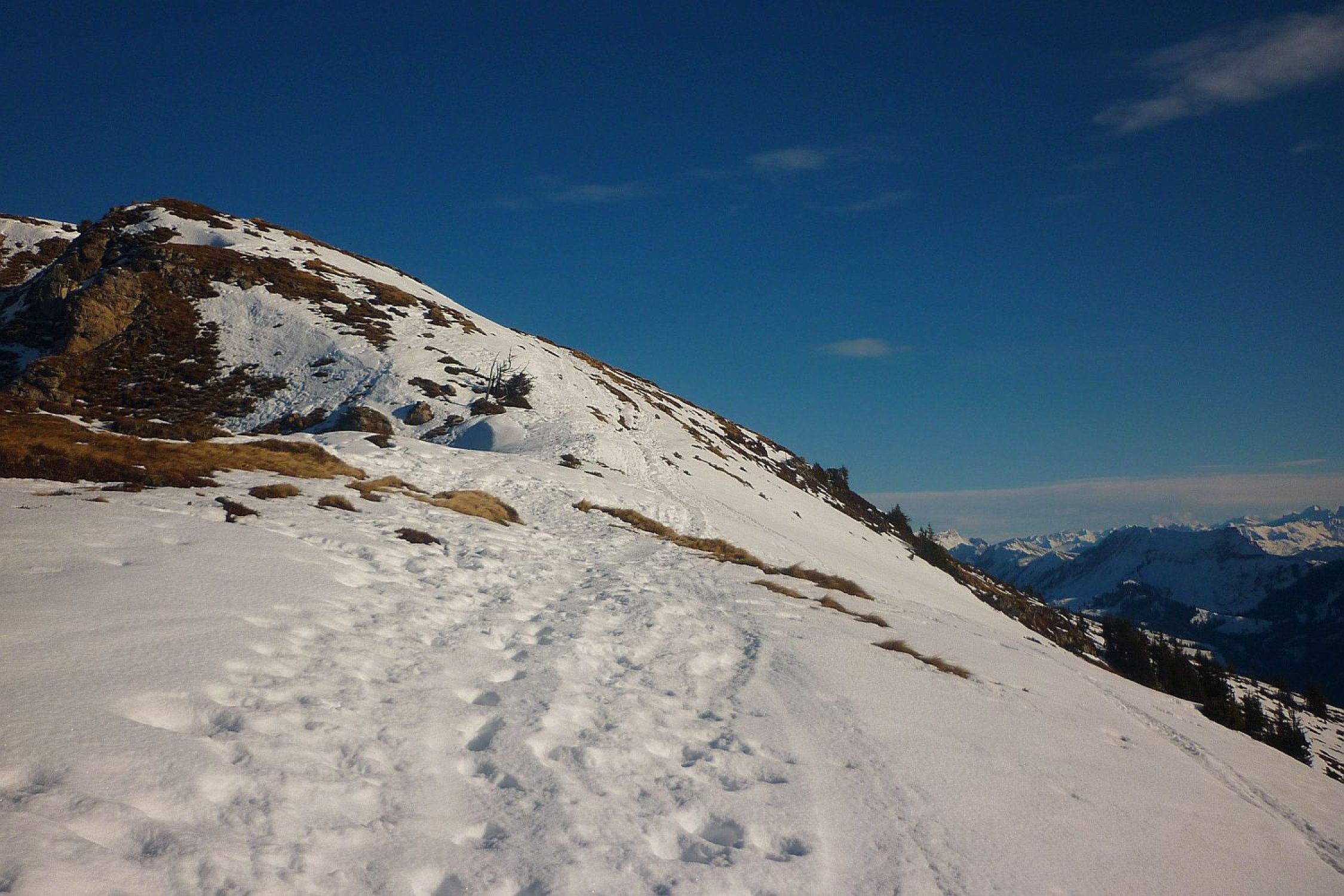 Von der Bergstation der Seilbahn Niederhorn (1934m) meistens auf einer breiten Spur, mit einem Abstecher auf den höchsten Punkt des Niederhorns (1963m), nordwärts dem Grat entlang. Hinab zum tiefsten Punkt P.1918m und sanft hinauf auf den Burgfeldstand (2063m).