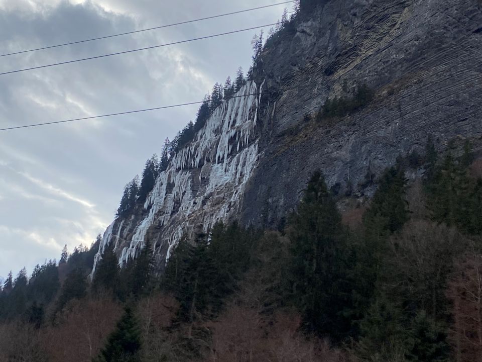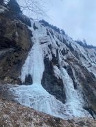 Interessante Kletterei, läuft viel Wasser, von der Strasse aus gut einsehbar. WI5, kurzer Zustieg. Markanter Eisfall. Alle Details im Eiskletterführer Hot Ice Band West
