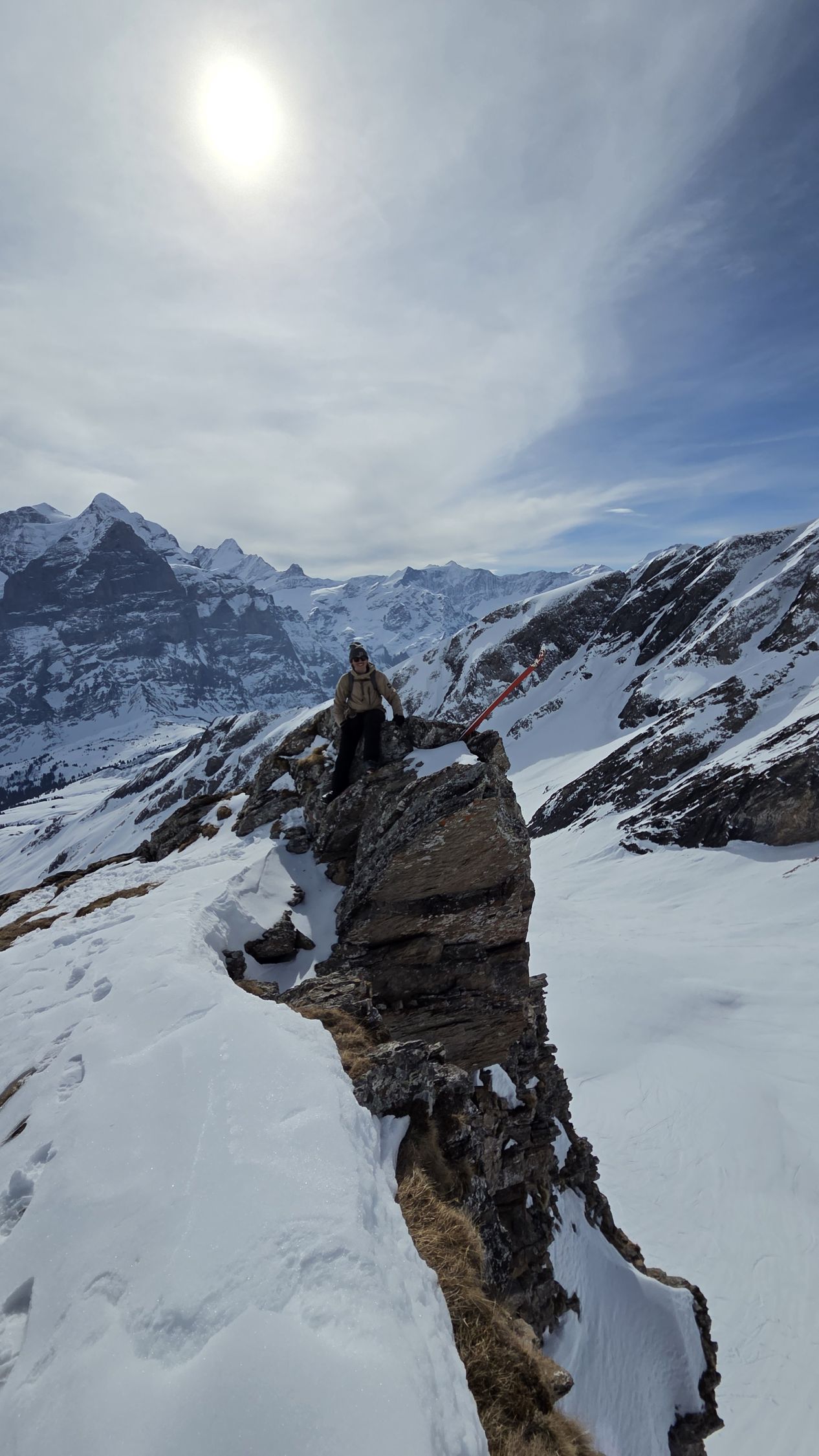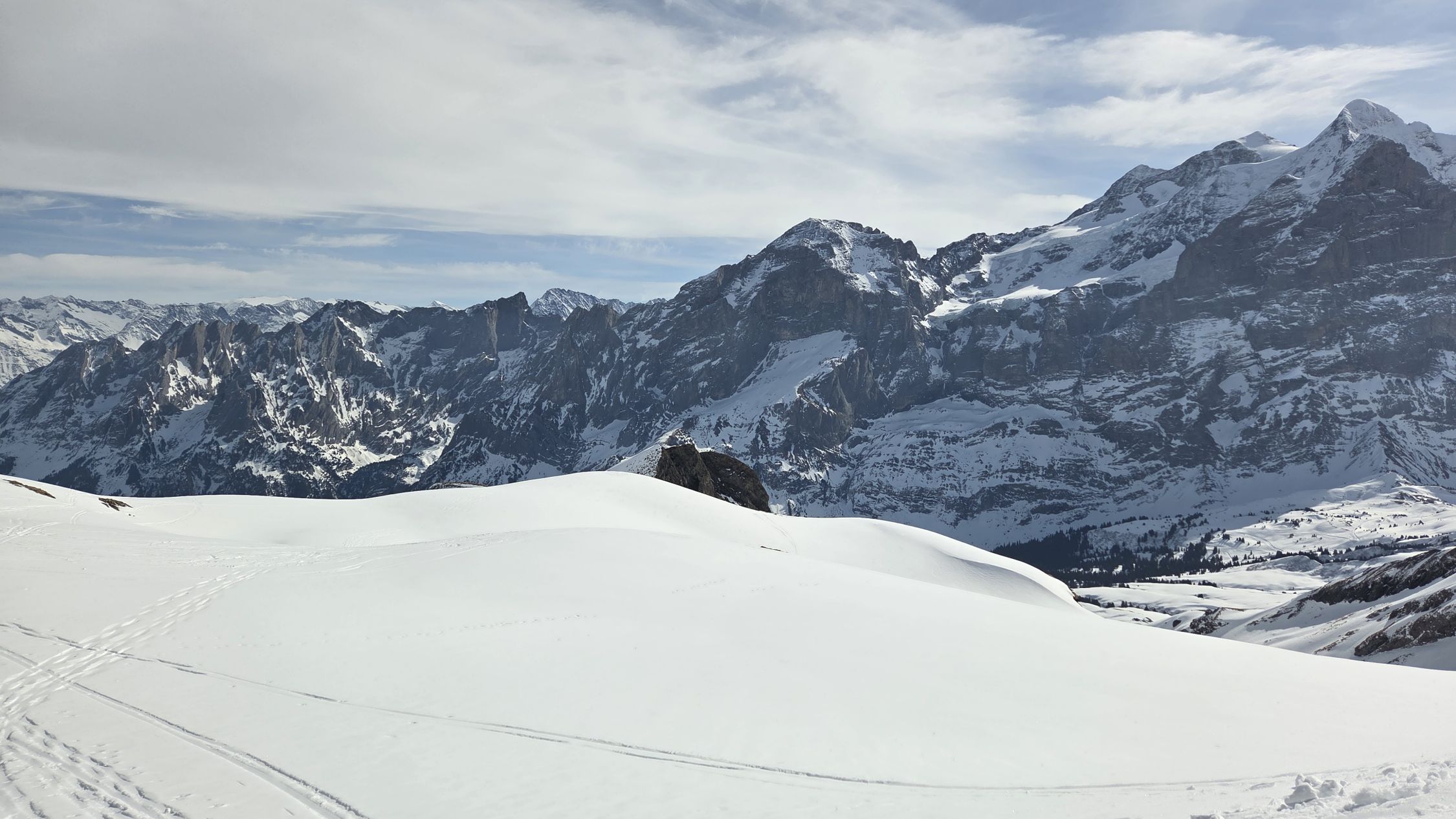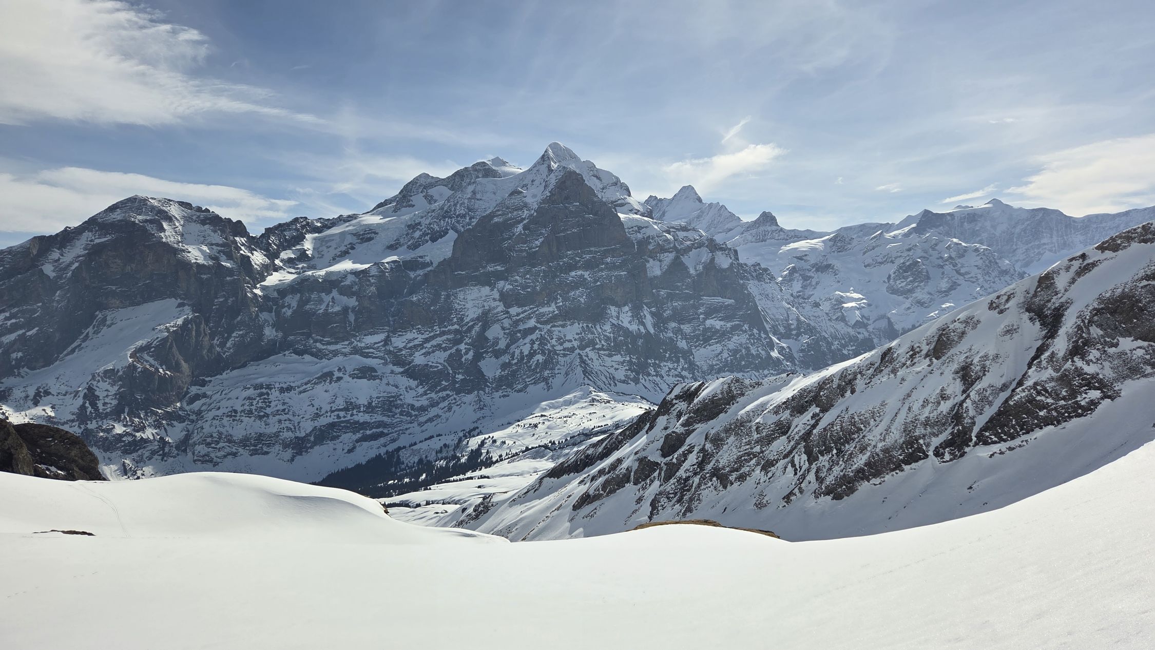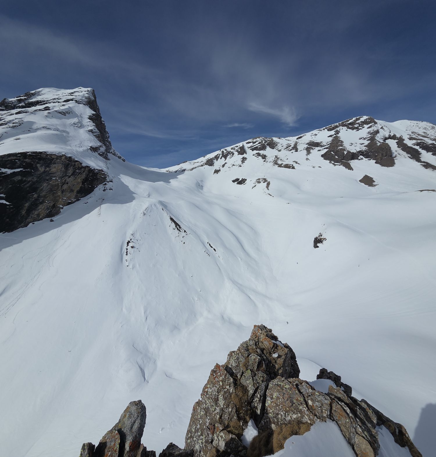 Sehr gute Verhältnisse ab Schwarwaldalp. Der Gipfel selber ergibt das WS+ da am Schluss eine Kletterstelle mit Gras und Plattenschuppen die Herausforderung des Tages war. Genialer Sulz an den Südhängen und auch ganz unten genügend Schnee