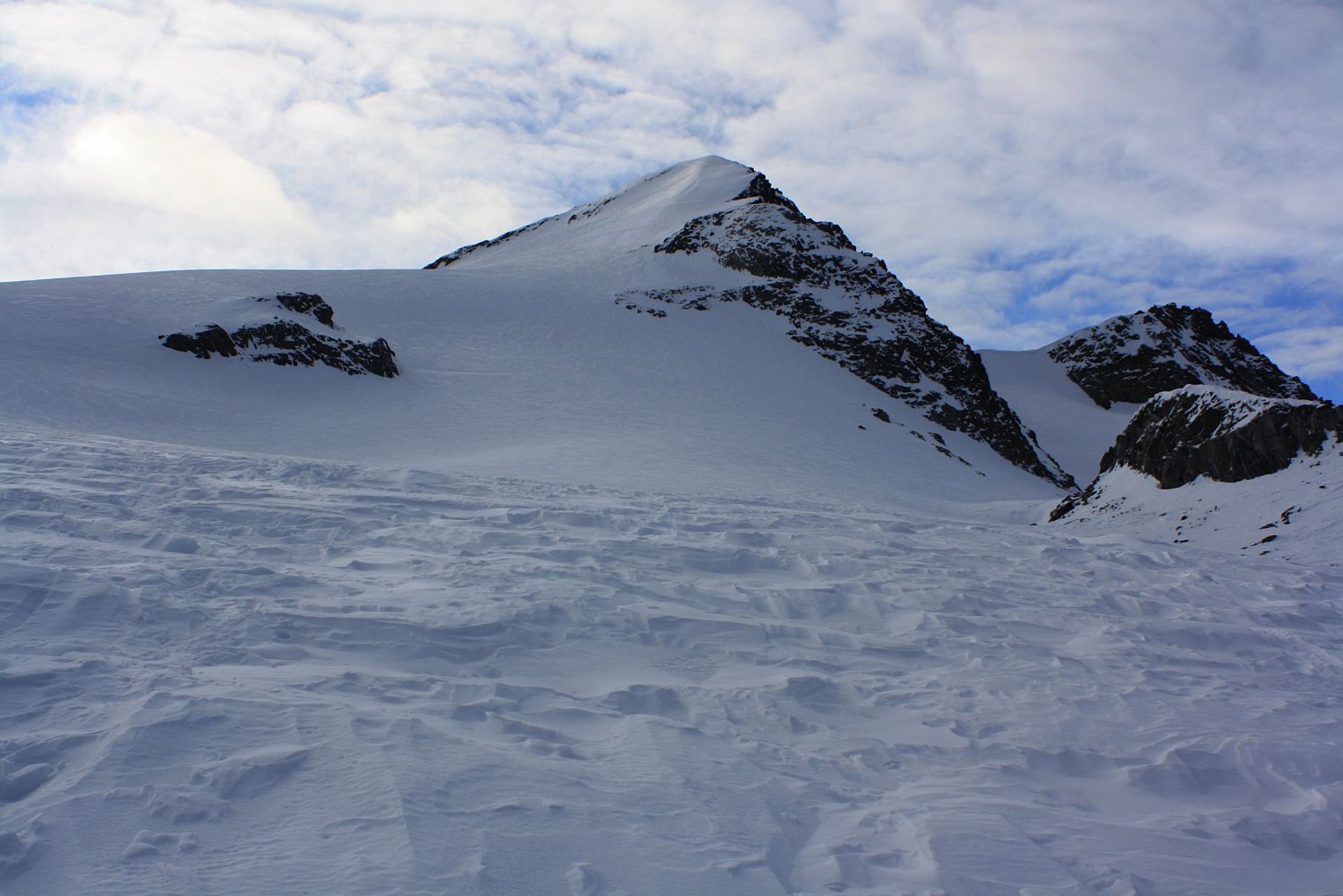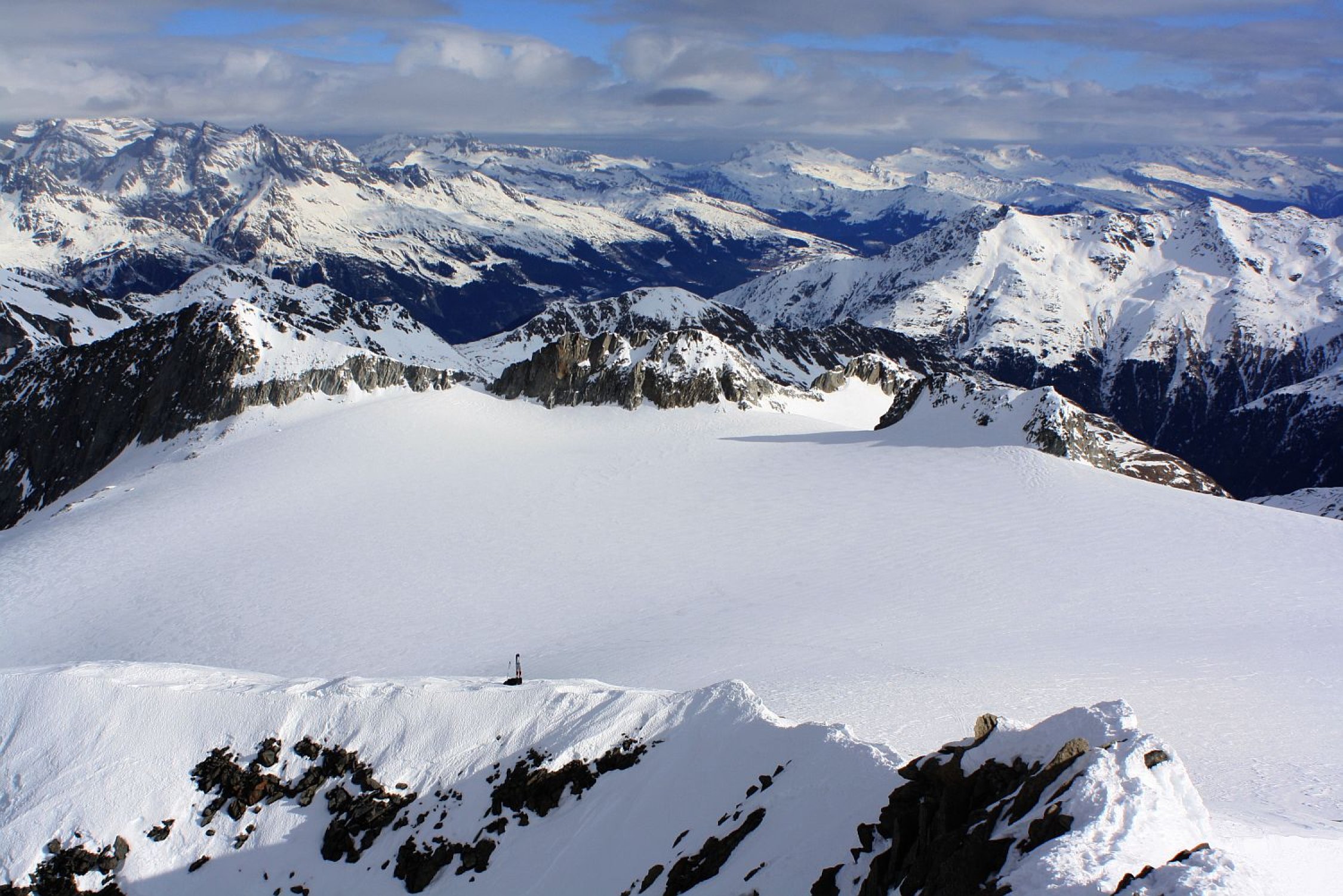 Die Spalten auf dem Gletscher sind meist gut eingeschneit, anseilen drum nicht nötig. Aber Gstältli anziehen und Seil im Sack ist Norm. Für den Gipfelgrat braucht es im Hochwinter keine Steigeisen und Pickel. Nach heissen Apriltagen und klaren Nächten kann der Schnee am Grat aber gefrieren und eisig sein, so dass für unsichere Tourengänger Steigeisen empfehlenswert sind.