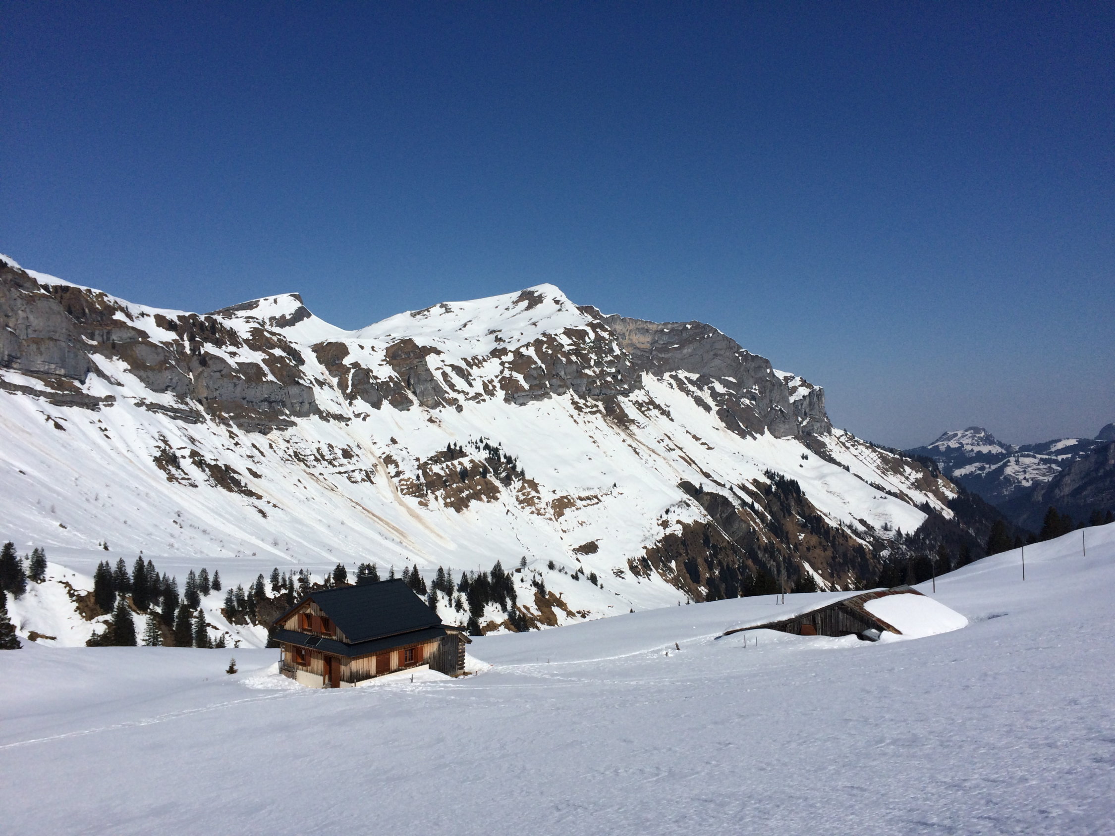 Vom Ochsenboden (Schiessplatz, Schiesszeiten beachten, Auskunft gibt Tel 055 414 64 00) zum Schwyzerblätz und Hinter Aueli (bis hierher ist die Strasse meistens geräumt).