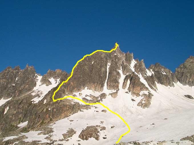 Lange, sehr schöne alpine Gratkletterei. 3 SL 4c, eine ganze Reihe von Passagen 4b, oft leichter. Topo aus Schweiz Plaisir Ost zur Orientierung äusserst nützlich (v.a. für Einstiegsbereich, Umgehung des roten Turmes, Gipfelaufschwung.) Sparsam mit Borhaken ausgerüstet. Friends mittlerer Grösse und ev. Klemmkeile nützlich.