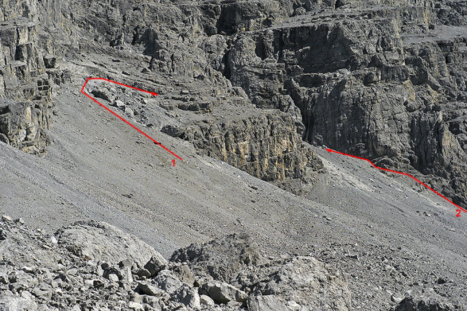 Zum Beginn der Rinne zur Fuorcletta da Pisoc (Punkt 3017, ohne Name auf der LKS) gibt es nun zwei Alternativen:
