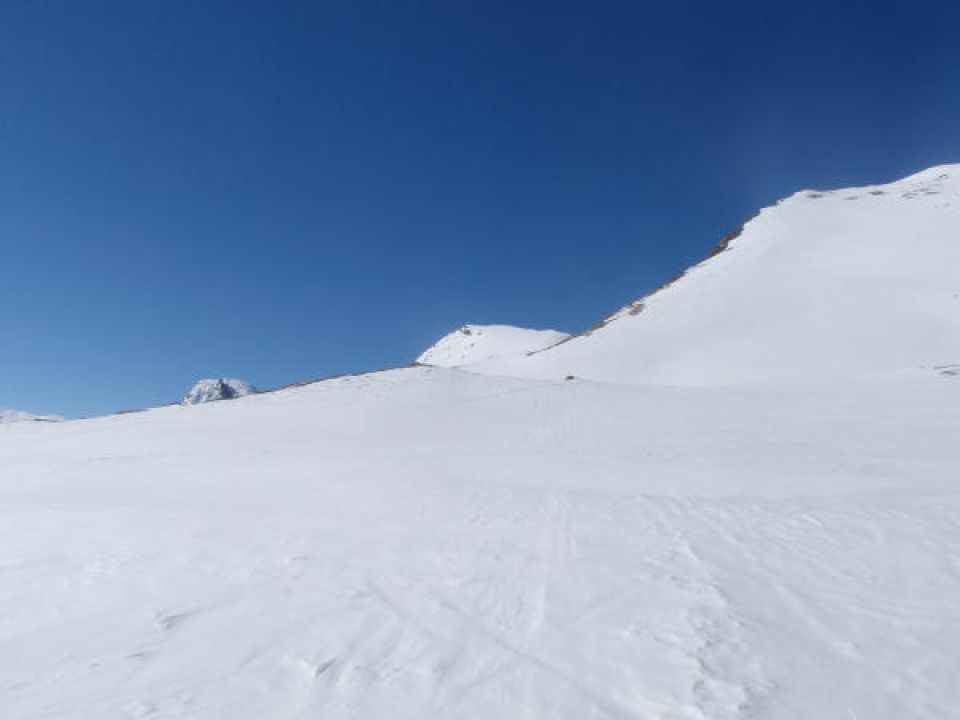 Von Juppa nach Norden auf der Langlaufloipe am Schlepplift vorbei ins Tal. Von dort rechts abbiegend auf den Hang "Fürgabärg". Nach gut 500 hm erreicht man das Plateau "Uf da Böda", auf welchem man Richtung Norden auf flachem, kupierten Gelände geht. Wenn man vom Tal einen Hang zu spät nach rechts abbiegt, ist der Hang eventuell etwas steiler, aber man kommt auf dem selben Plateau raus. Den Gipfel erreicht man schließlich über den Grat, der gut mit Ski zu gehen ist.