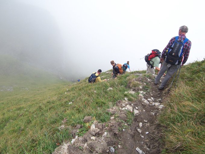 Vom Firstboden (1740 m) auf alpiner Route (weiss-blau-weiss) über den Nordgrat in 2½ Std. aufs Mittagshorn. Abwechslungsreiche Gratwanderung mit wunderbarer Aussicht. Steile Grasbänder sind mit Drahtseilen und Wegstufen gesichert.