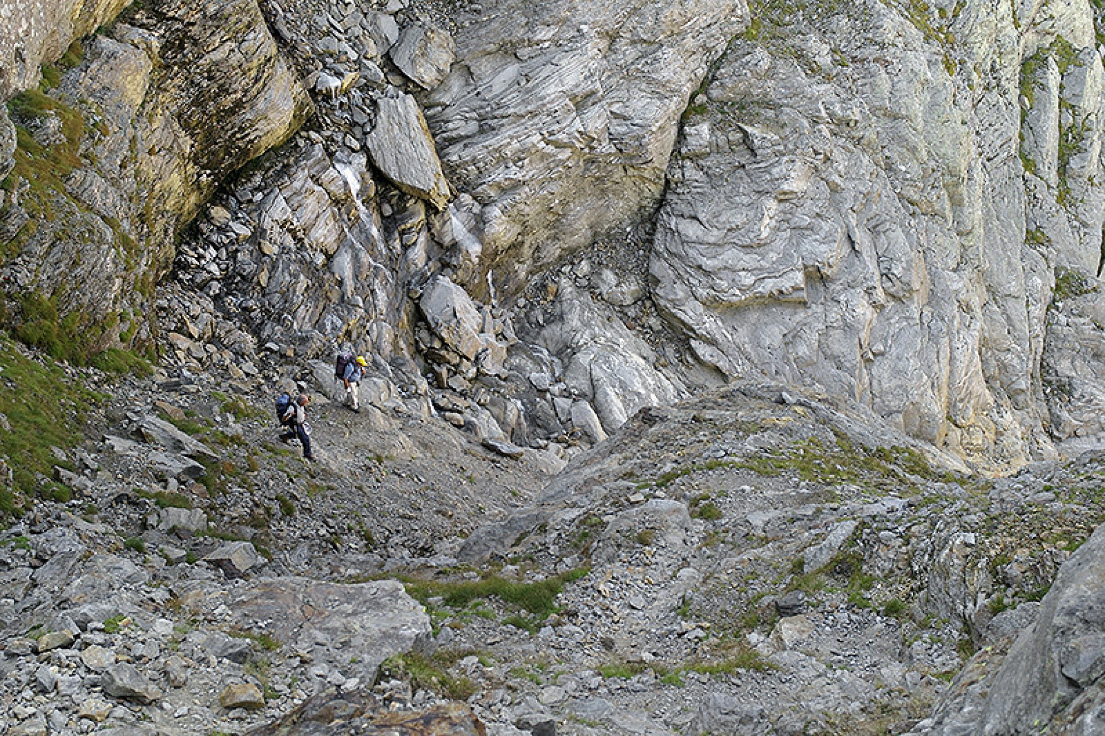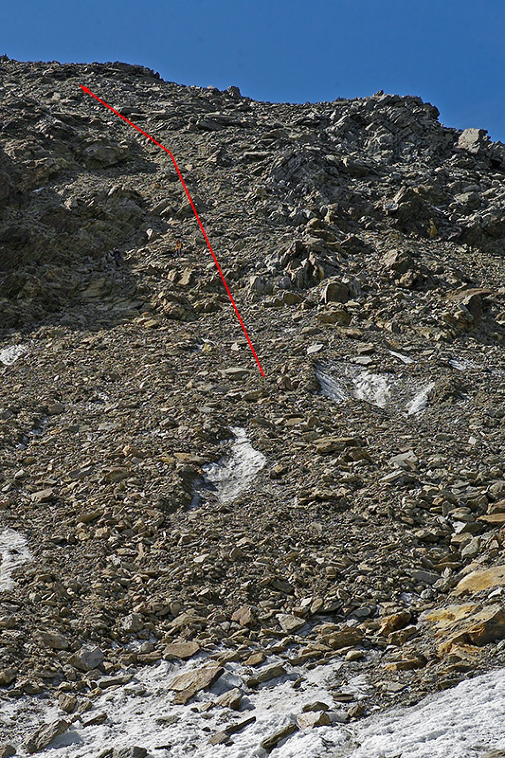 Der Ghiacciaio Grande di Croslina hat sich auf das Becken direkt unterhalb des eigentlichen Gipfelaufbaus zurückgezogen. Er wird vom Normalweg nicht mehr direkt berührt. Am Normalweg liegt lediglich noch wenig schuttbedecktes Toteis, das sich problemlos ohne Steigeisen bewältigen lässt.