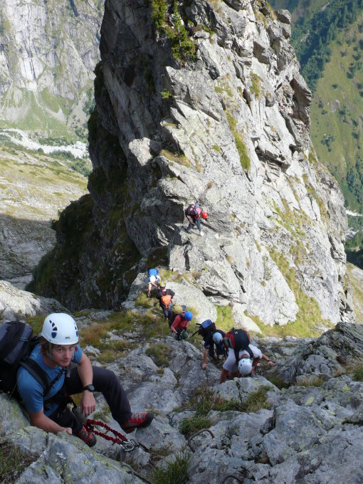 Nach dem kleinen Weiler ze Steinu folgt man dem Weg noch ca. 15 Minuten, bis man am Weg zur markierten Abzweigung trifft. Nun folgt man den Weiss-Blau-Weissen Markierungen den Wegspuren steil und abwechslungsreich durch eine Höhle und weiter bis an den Einstieg des Klettersteigs. Der Klettersteig ist stellenweise sehr steil und ausgesetzt aber sehr gut eingerichtet und nicht schwierig. (KS 4+) Die eigentliche Schwierigkeit ist der grosse Höhenunterschied von 1200 Höhenmetern von der Strassenabzweigung bis zur Hütte. Also frühzeitiger Start lohnt sich auf jeden Fall.