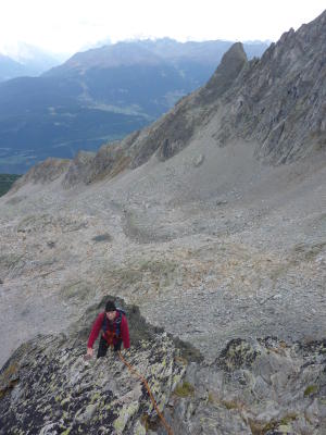 Von der Wiwannihütte via Horugüegi zum Einstieg am grossen Quarzblock, weiter in leichter Kletterei zum Gipfel (teilweise Bohrhaken).