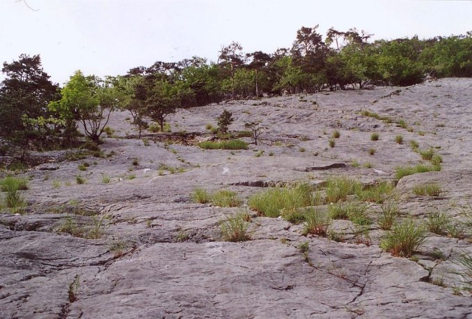 Von der Strasse wenige Meter in die Combe du Pont hoch, dann gleich links an den Fuss einer mächtigen Platte (Muniring). Vom Ring gerade hoch, anschliessend rechtshaltend in prähistorischen Dino-Spuren kletternd zu Bohrhaken. Nun ziemlich gerade hoch (ca. 3-4 Längen 3b obligat.) an das Ende der Platte wo der eigentliche W-Grat beginnt. Alternativ kann die Platte auf einem offensichtlichen Band von rechts unten nach links oben mit den Händen im Hosensack bis zum eigentlichen Grat gequert werden. Der Grat ist mit diversen Türmen gespickt die alle entweder überklettert werden können (bis V...!) oder aber auf deutlichen Wegspuren mal links, mal rechts umgangen werden können. Eine zirka 10 m Wand ist mit Stahlstiften ausgerüstet. Die Route erfordert etwas Kraft und Verträglichkeit auf einige etwas ausgesetzte Stellen.