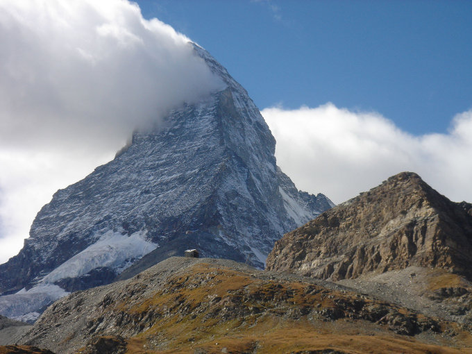 Start ab Berghotel Schwarzsee (2580 m). Anforderung: Stellen III-, teilweise mit Fixseilen, überwiegend I und II. Von der Hörnlihütte über den Gratrücken zu den Einstiegseilen. Bis zur Solvay Hütte (Schutzhütte auf 4000m) ist die Wegfindung in der Dunkelheit sehr schwierig, es empfiehlt sich bereits am Vorabend bei Tageslicht den Aufstieg bis zur Stelle "Auf dem Grat" (Fixseil, Stifte) zu erkunden. Ist man aber auf der richtigen Spur, so ist der Aufstieg wie eine alte Kirchentreppe. Ab Solvay stets dem Grat nach bis zum Schweizergipfel und weiter über den luftigen Grat zum Italienergipfel.