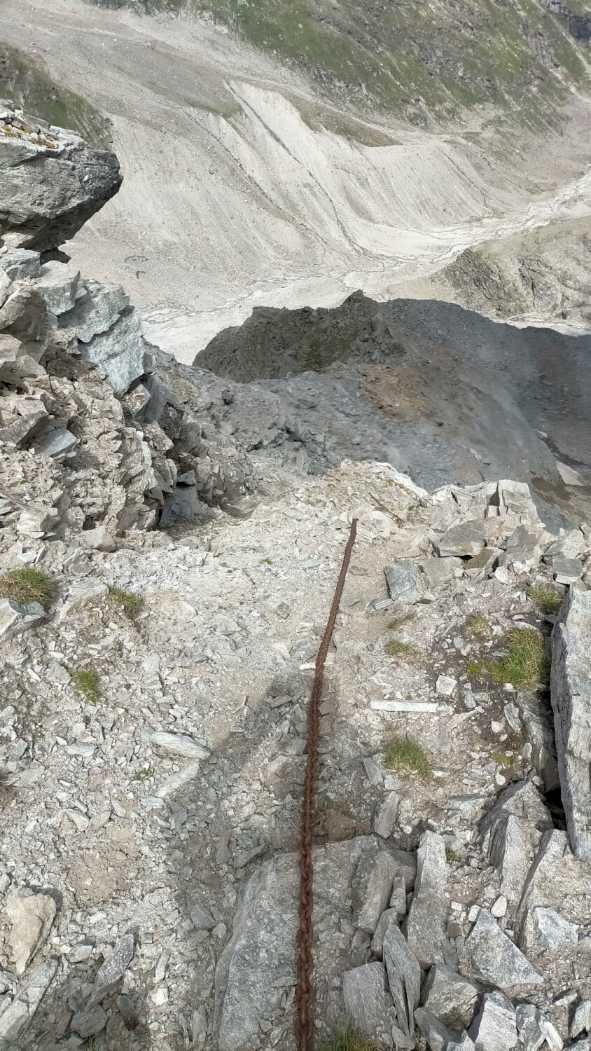 Die Route bis zur Läntalücke ist wohl wegen des starken Rückgangs des Permafrosts? mittlerweile weitaus schwieriger einzustufen respektive nicht mehr empfehlenswert. Es hat viele Stellen mit losem Gestein / Geröll, welches kaum mehr Halt bietet und die Begehung schwierig macht. Zudem besteht an diesen Stellen absturzgefahr. Nicht alle diese Stellen sind aktuell mit zusätzlichen Steilen gesichert - wir hatten einen erfahrenen Hochtourengeher dabei, der glücklicherweise den Vorstieg übernehmen und uns dann sichern konnte. Eine Kettensicherung kurz vor der Läntalücke ist zudem ausgerissen, weshalb die Kette nur noch bedingt als Aufstiegshilfe verwendet werden kann. Wir würden die Route bis zur Läntalücke nicht noch einmal begehen.