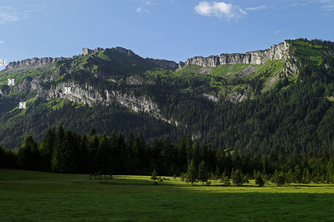 Ist die Landesgrenze bei Sibratsgfäll Ausgangs- und Endpunkt der Tour, bildet der Abstieg über das Löwental eine auch landschaftlich sehr abwechslungsreiche Alternative.