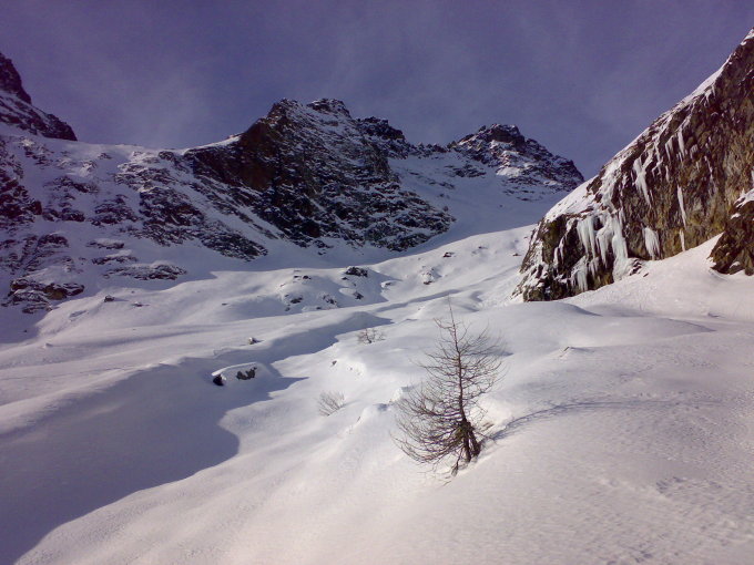Spalten im Flirscher Ferner gut zu umgehen. Am Gipfelgrat je nach Schnee Steigeisen / Pickel hilfreich, eventuell Seil für Variante direkt am Grat.