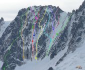 Das erste, westlichste Couloir ist wahrscheinlich nur bei winterlichen Verhältnissen empfehlenswert, da im Auslaufbereich des Couloirs auf den Gletscher steile Moränen mit losen Blöcken (Steinschlaggefahr!) vorhanden sind. Im Mai 2010 war dieses erste Couloir aber gut abzusteigen. Ca. 100 Hm oberhalb des Gl. Leschaux, wo der Bach inmitten der Rinne/Schlucht reißend wurde, musste man ca. 30 m an den Fuß des Felspfeilers an den rechten Schluchtrand queren, um von dort auf den Gl. de Leschaux zu gelangen. Ende April 2015 sah der Couloir-Ausstieg unten auf den Gletscher sehr übel aus.