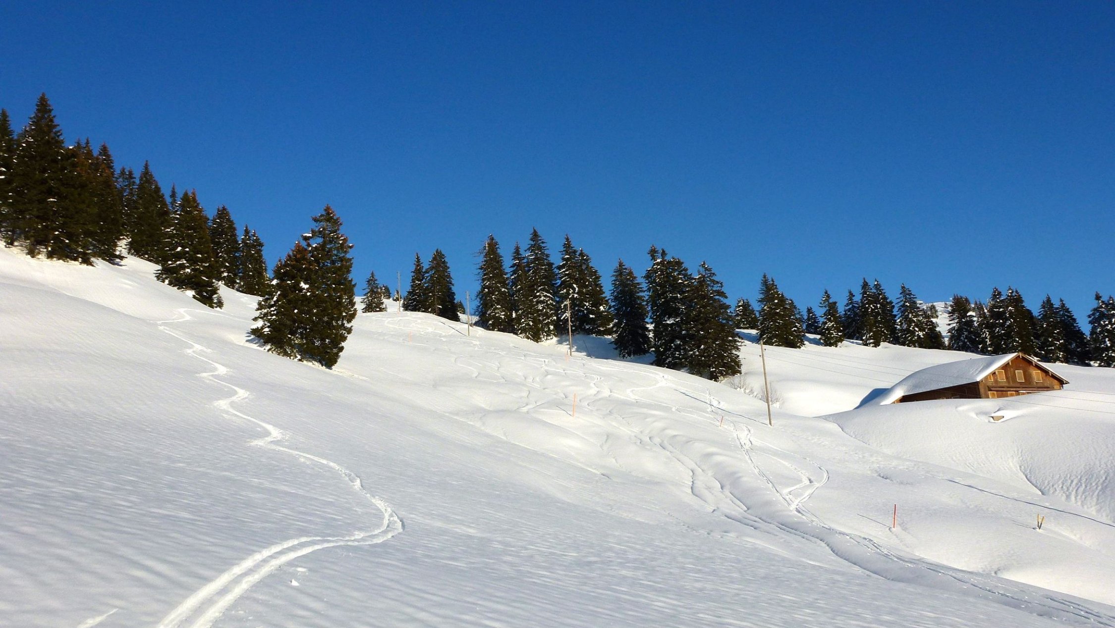 Abfahrt über selbe Strecke. Beachtet die Wildruhe- und Schutzzonen (meistens die jungfräulichen Schneeflecken) ;-)