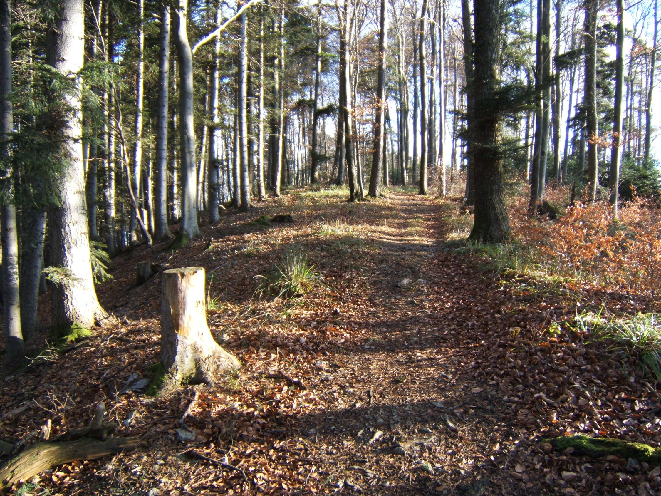 Ausgehend vom Challpass [koord-ch]601550|255490[koord-ch] einer nach Norden führenden Forststrasse folgen bis man auf den Kamm stösst auf dem praktisch auf ganzer Länge ein Weglein über Metzerlenchrüz, Hofstettenspitz, Blauenpass zum [koord-ch]608720|256650[koord-ch] Blattenpass führt. Von hier diverse Abstiege (Ettingen, Aesch, Nenzlingen...) möglich.