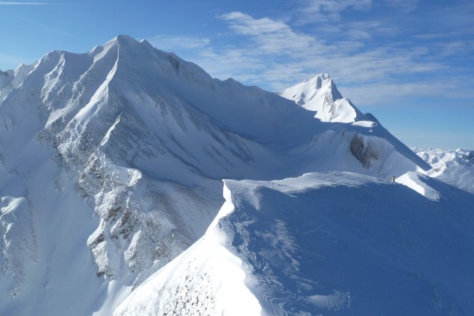 Abfahrt bei sicheren Verhältnissen durch's Hasentäli, vom Sattel westlich des Gipfels direkt abfahren, das Schinbergjochli rechts liegenlassen zum Brisenhuis.